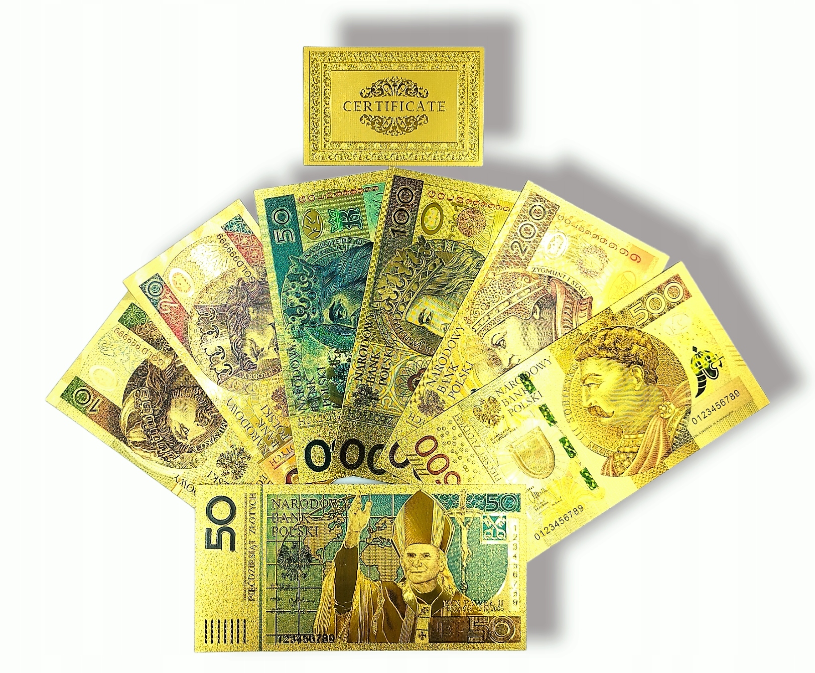 УНІКАЛЬНИЙ КОЛЕКЦІЙНИЙ НАБІР Позолочені польські ПВХ банкноти Бонус