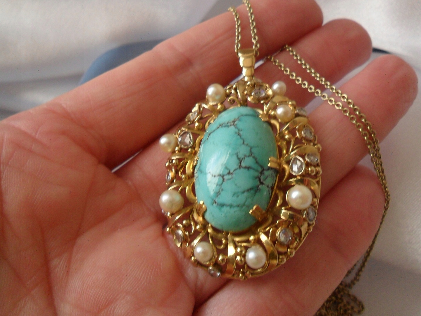 Уникальный кулон - бирюзовый - бриллианты - Perly.