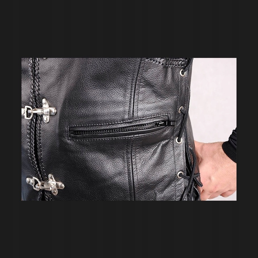 Кожаный мотоцикл жилет от L & J Ripard Model KM005, без сомнения, бестселлер и флагман нашего бренда в категории кожаных жилетов. В течение многих лет тщательно изысканный и созданный из самых высоких видов натуральной кожи крупного рогатого скота, поэтому он ценится даже самыми требовательными мотоциклистами. Королевенно украшенные -с краями, стальными, и прочными карабинерами, хромированными гидами, густыми кожаными регуляторными ремнями и, прежде всего, декоративных зажимов на плечах, которые придают ему беспрецедентный и уникальный дизайн. Сшита из больших кожных пятен, чтобы предотвратить соединения в местах, где клубные пятна или эмблемы чаще всего сшивают. Отлично как для куртки, так и для футболки, даст вам элегантность и класс, и в то же время позволит вам выделиться из толпы