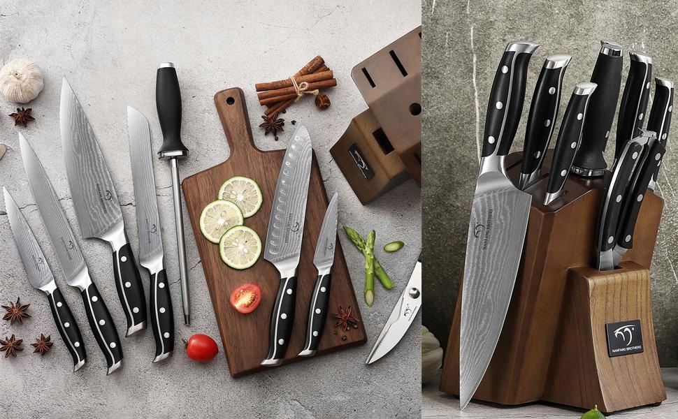 Кухонный набор ножей Next Brothers 9ER Заточка для шеф-повара Набор в форме сердца с блоком, дамасский Профессиональный нож из нержавеющей стали Нож для стейка Ножи с деревянной ручкой Кухонные острые ножницы и ножницы
