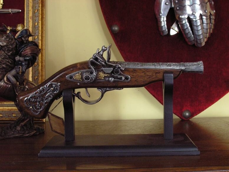 p>Уникальная копия богато украшенного немецкого кремневого пистолета XVIII века.