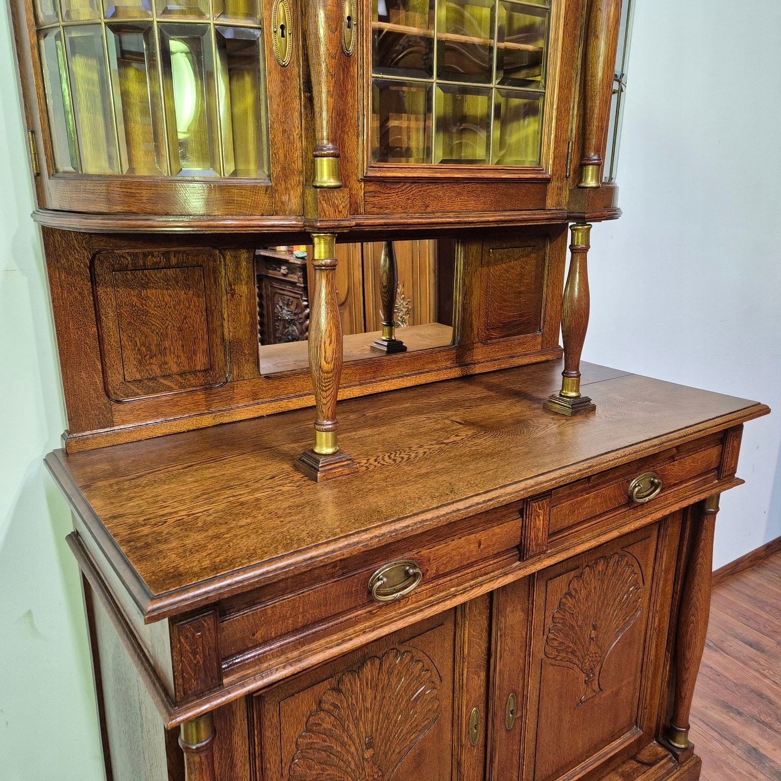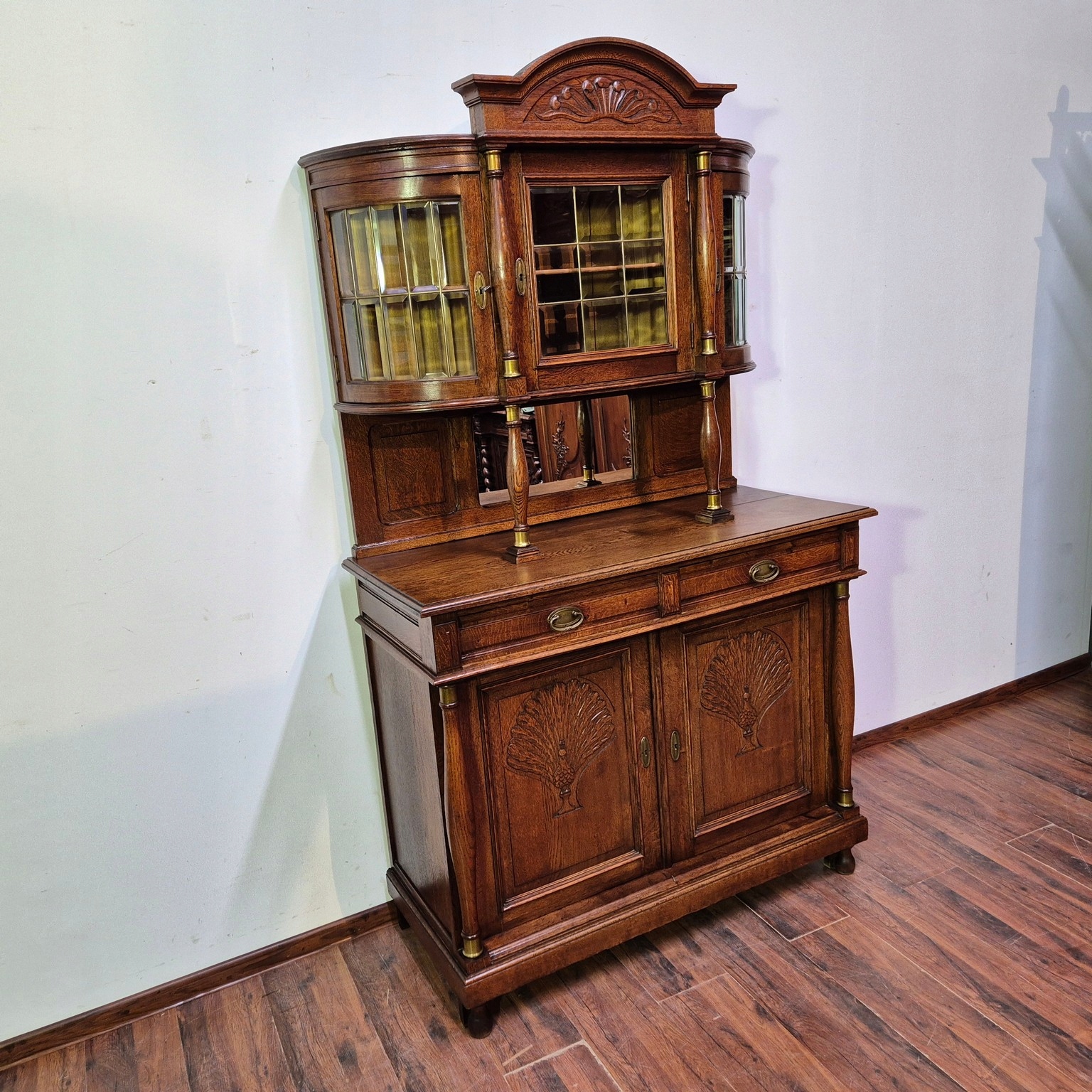 Уникальный фуршетный сервант в стиле модерн. Страна происхождения: Франция. Мебель из массива дуба. Скошенное стекло.