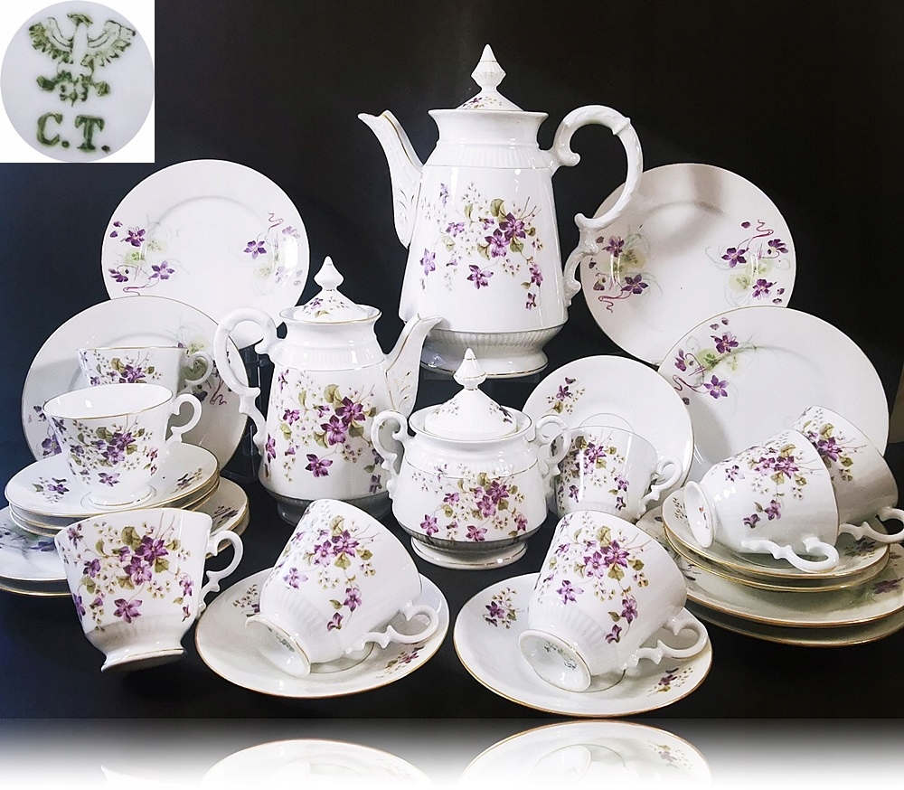 УНІКАЛЬНИЙ СЕРВІС CT Tielsch Wałbrzych близько 1900 р., кавовий сервіз, 8 осіб