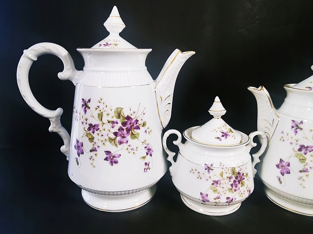 Комплект в очень хорошем состоянии. Кувшины и сахарница находятся в исключительно хорошем состоянии, в идеальном состоянии.