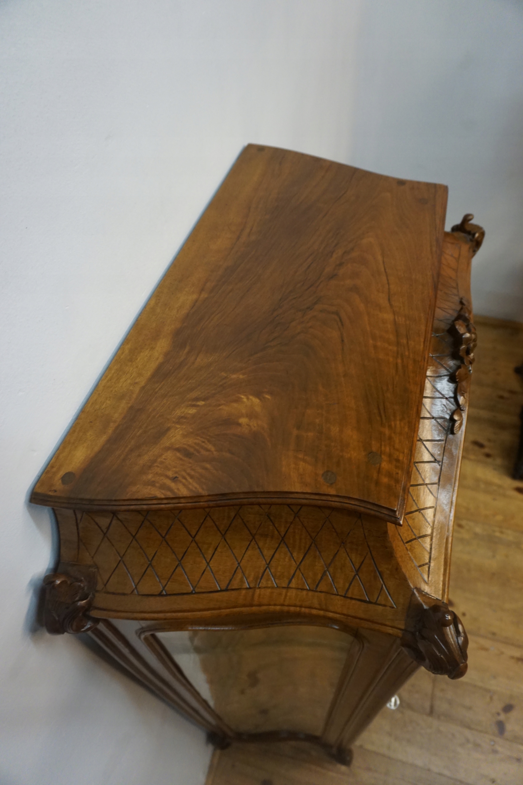 - Богато украшенный орнамент - особенно в верхней части мебели, а также на ножках и дверцах, что характерно для рококо.