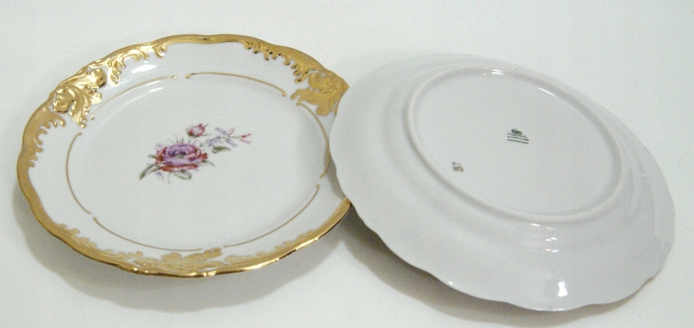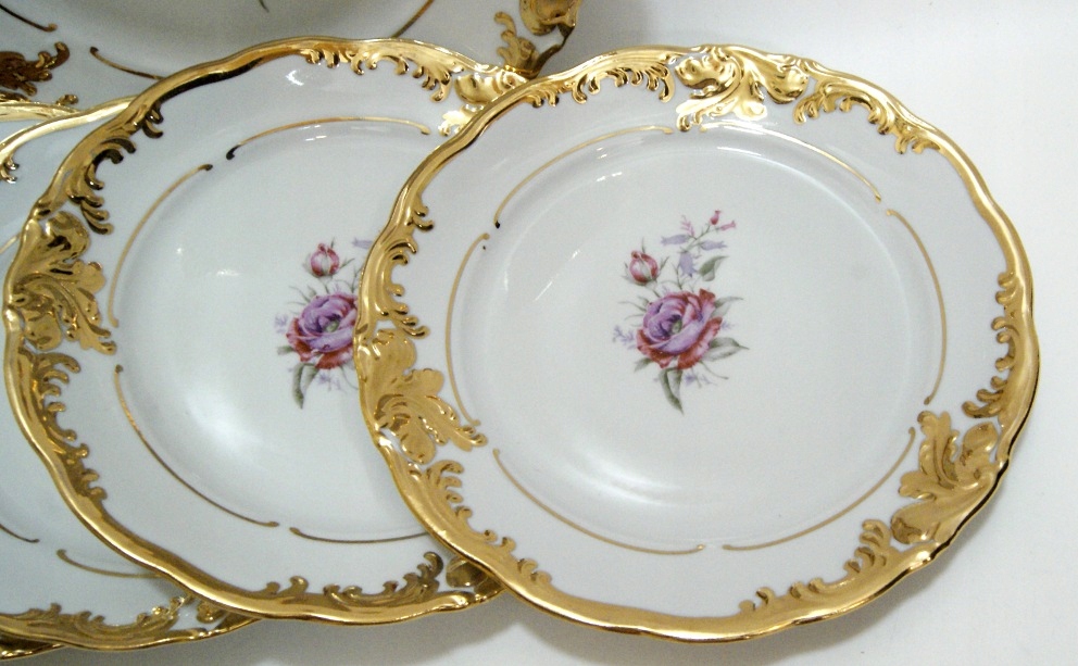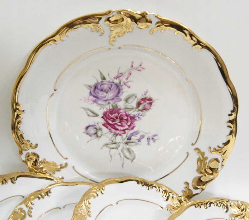 Предмет аукциона - старинное блюдо + 5 десертных тарелок, сервиз выполнен из белого фарфора, украшен обширной позолотой, цветами и красивым рельефом - уникальный сервиз. в отличном состоянии.
