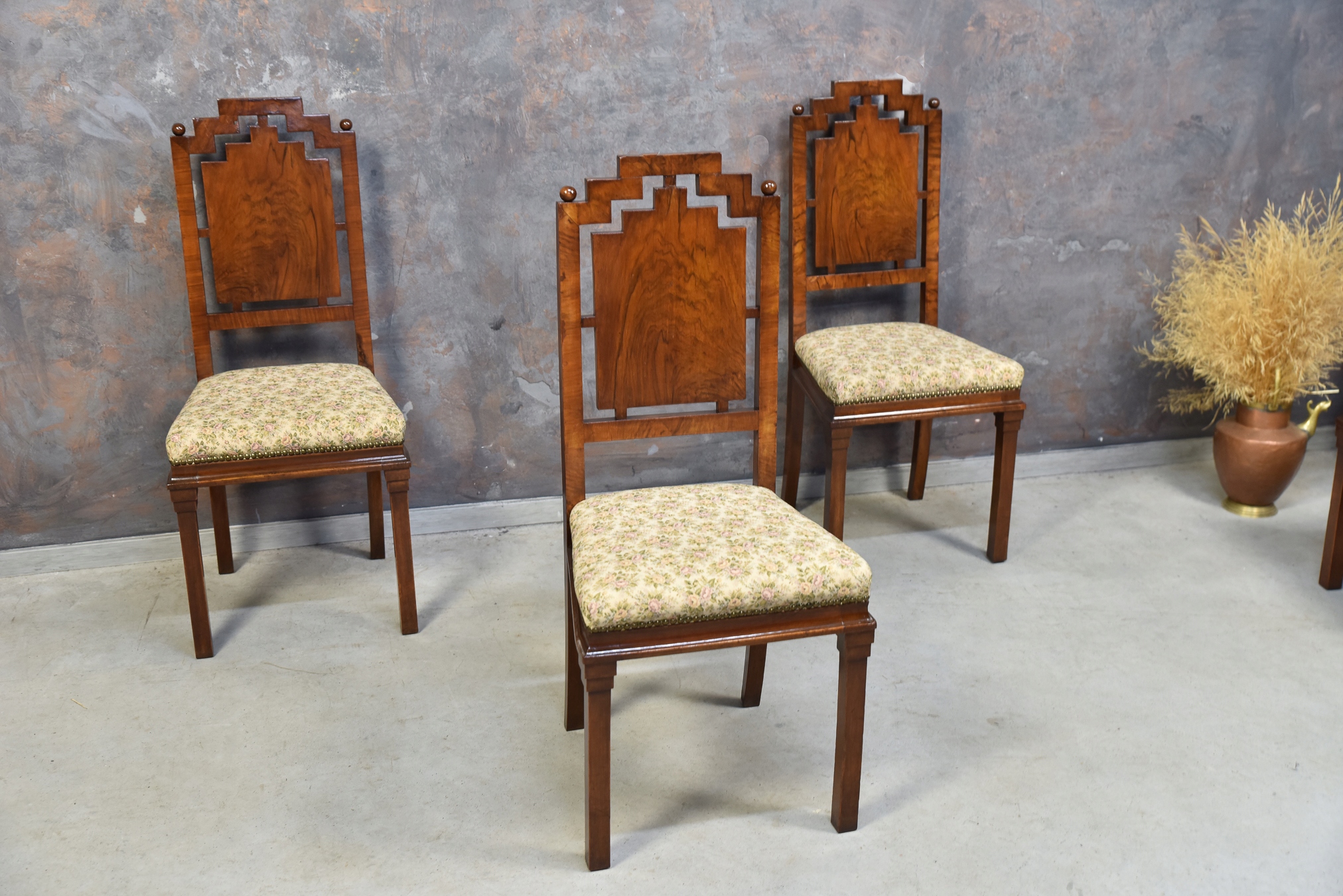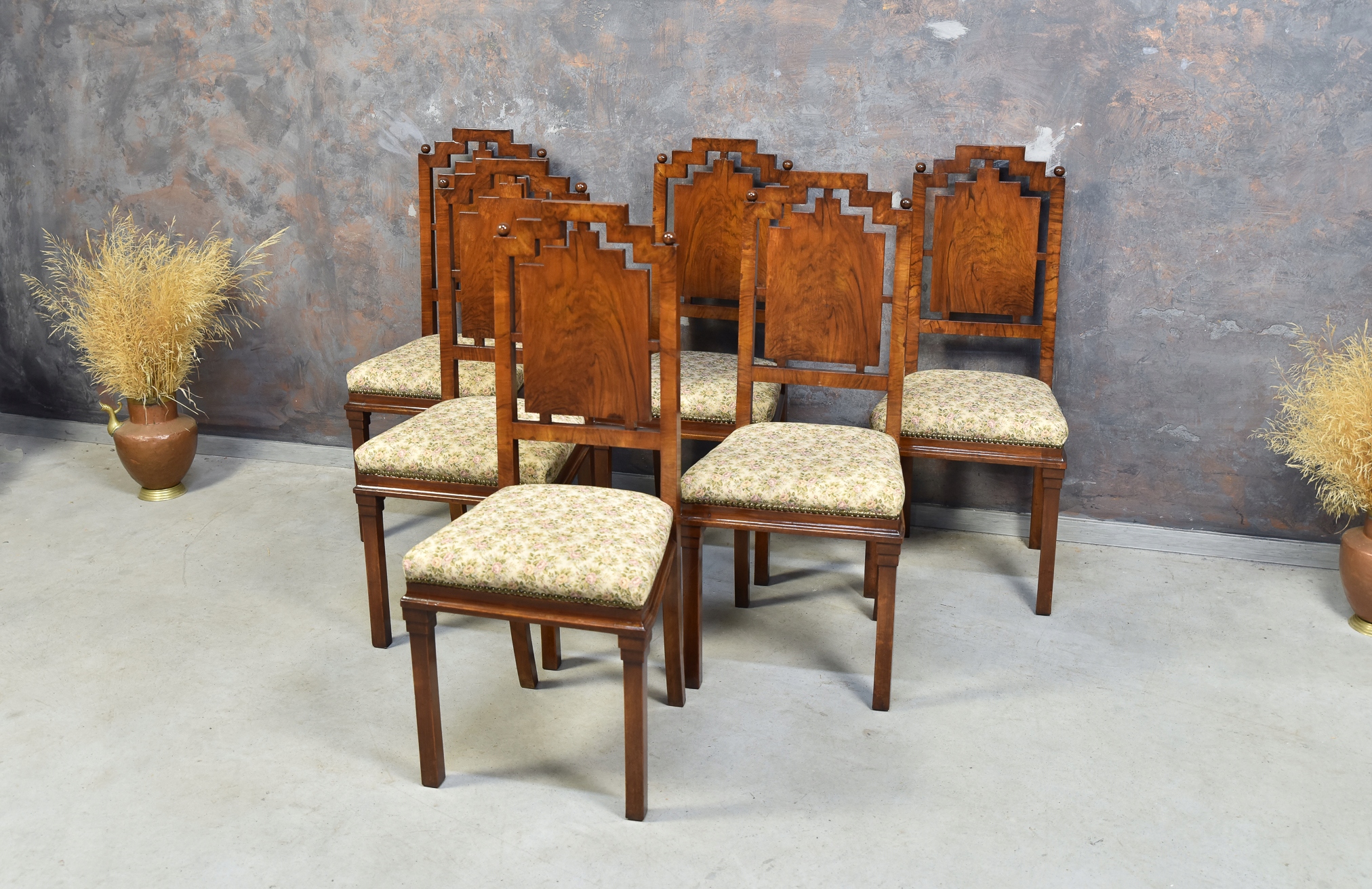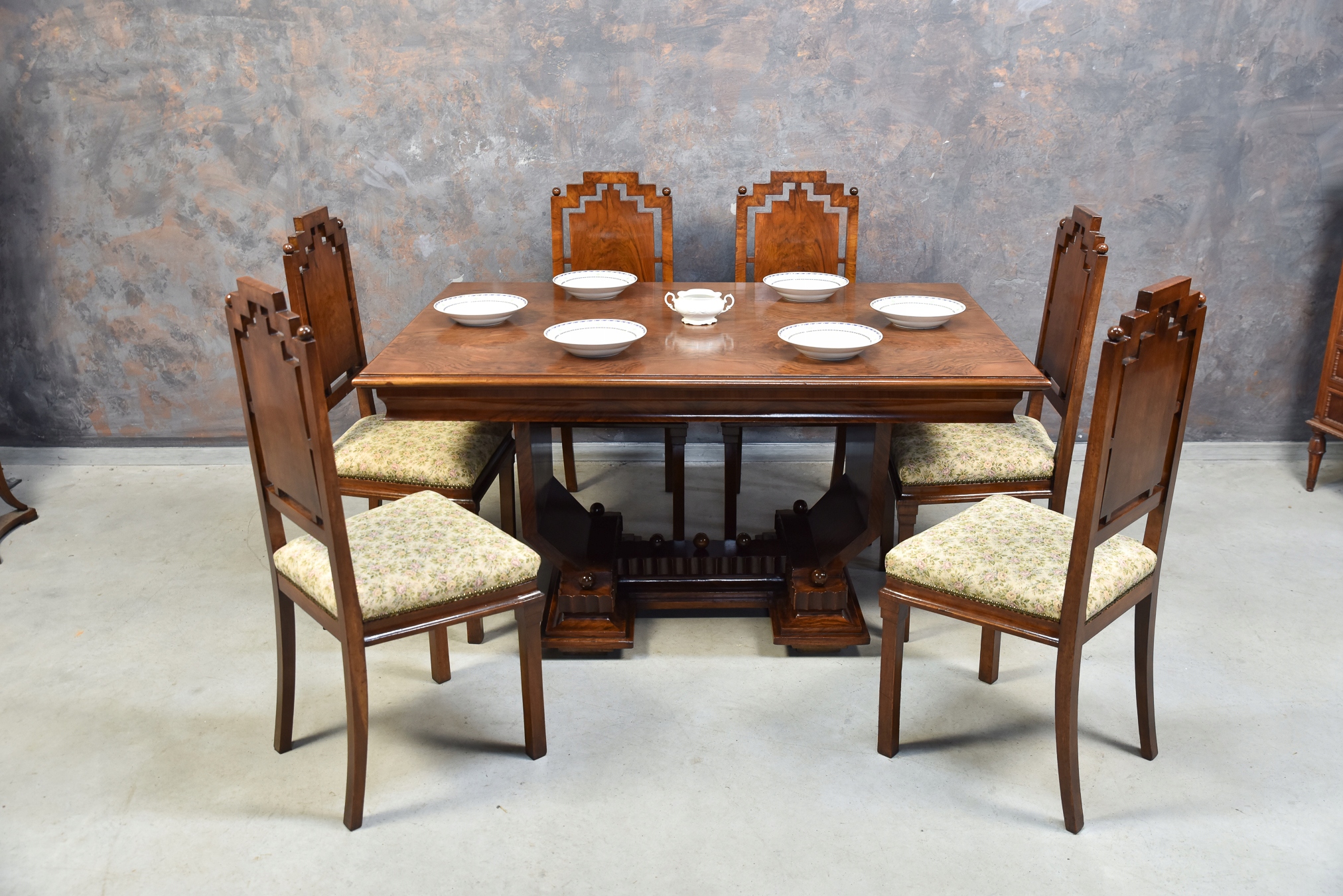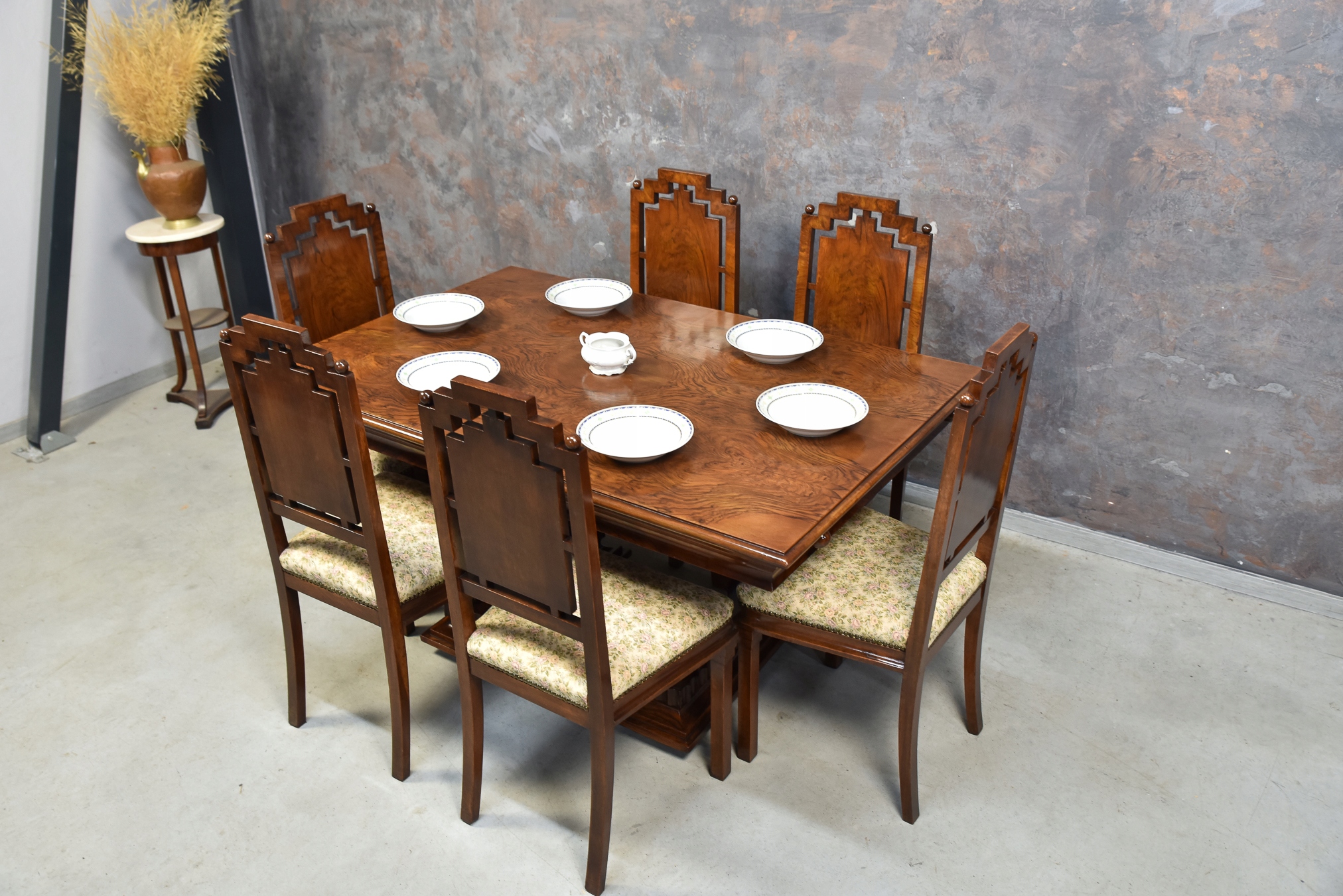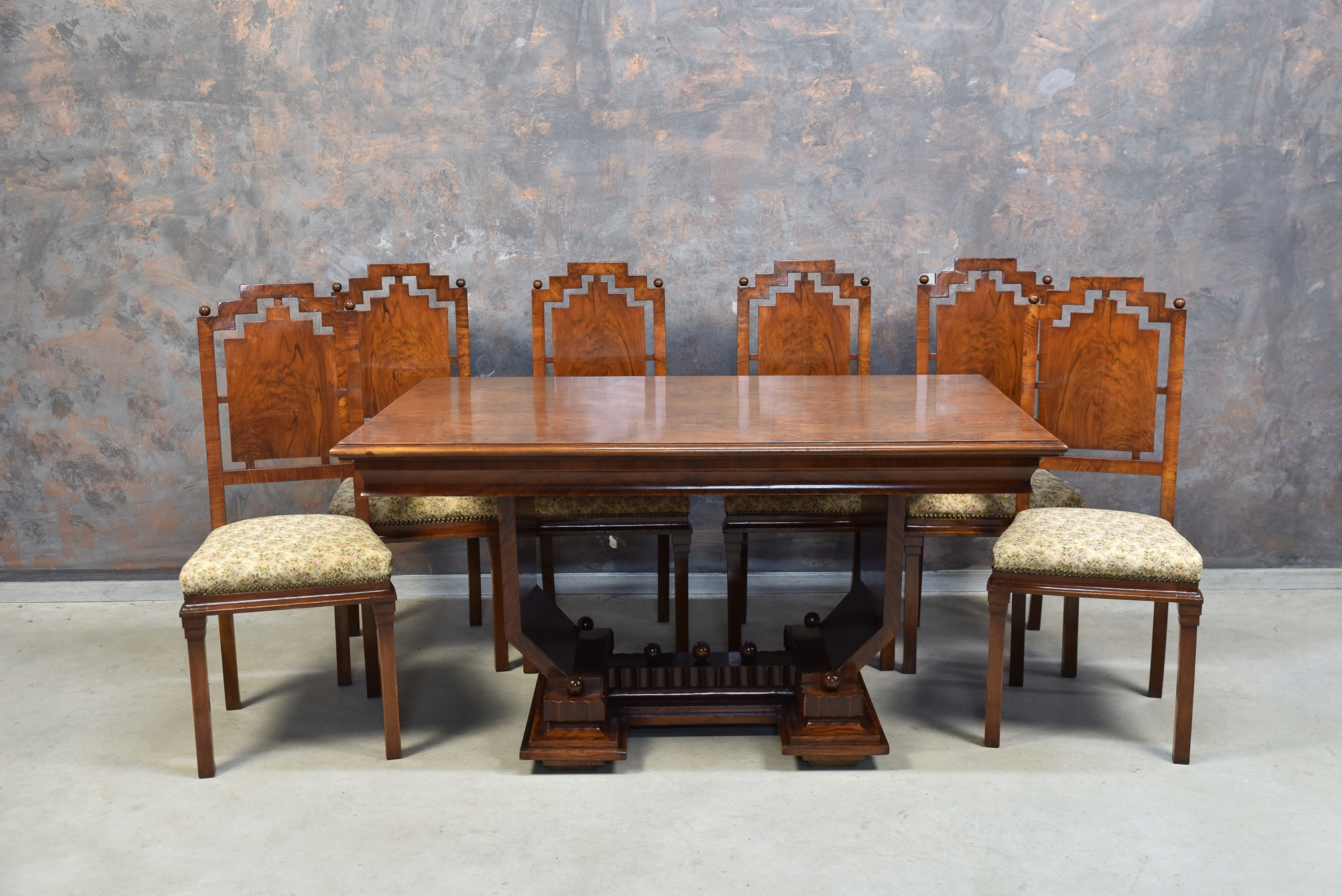 UNIKATOWY STÓŁ + 6 KRZESEŁ ART DECO LITE DREWNO ORZECHOWE PO RENOWACJI
