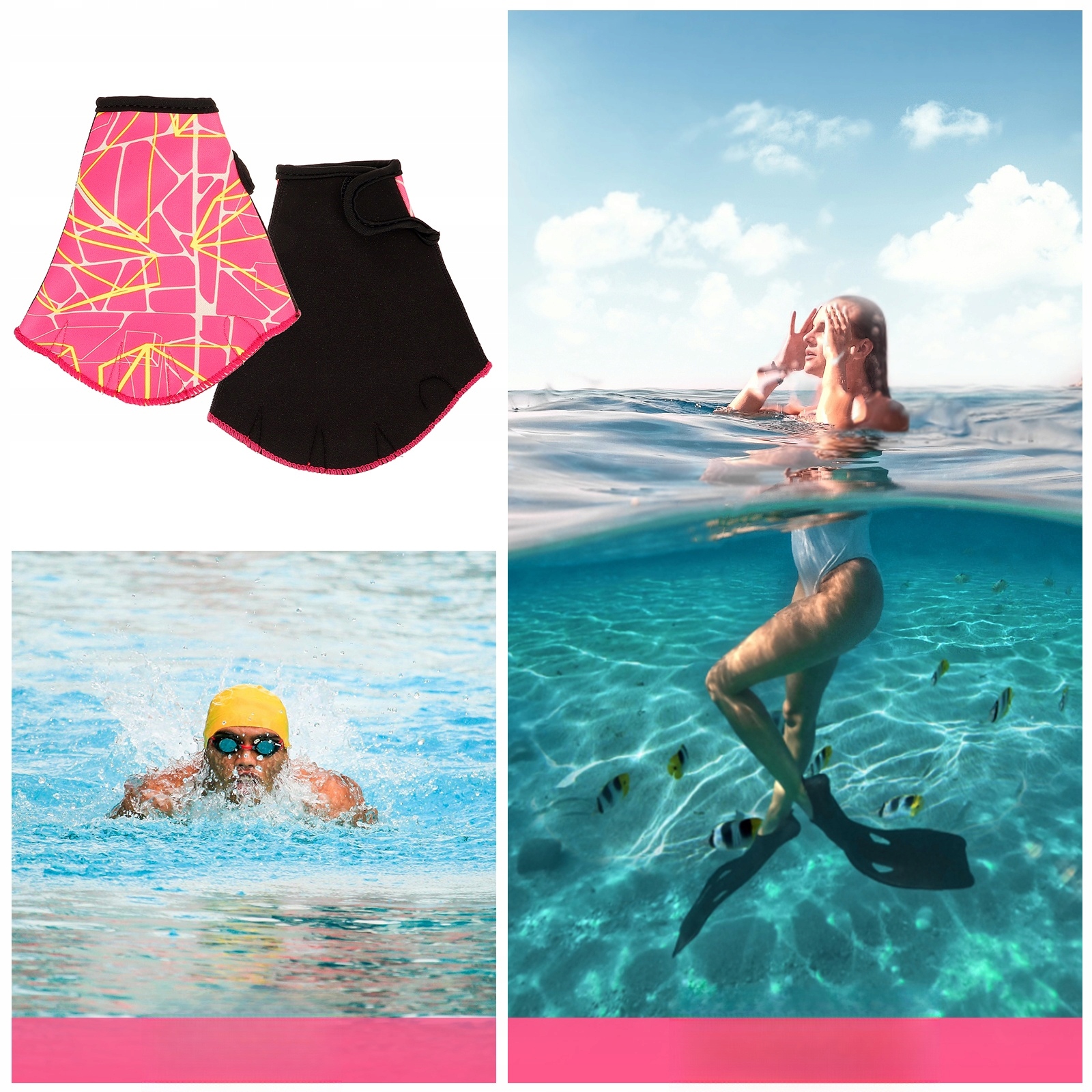 UNISEKSOWE PŁETWY PŁYWACKIE RĘKAWICE DO BASENU I NURKOWANIA