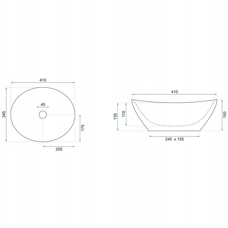 ✅Тип чаши: Подвесная без оправы