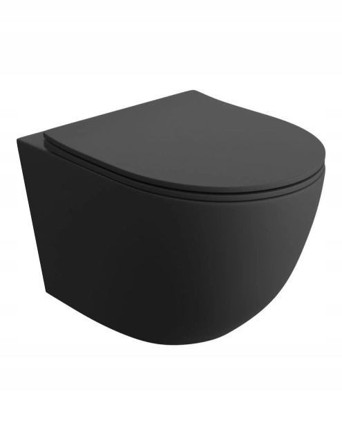 Унитаз из сантехнической керамики черного матового цвета. Форма чаши позволяет оптимально использовать пространство, а инновационная система Rimless обеспечивает функциональность. Сиденье для унитаза оснащено тонкой доской, которая медленно закрывается.