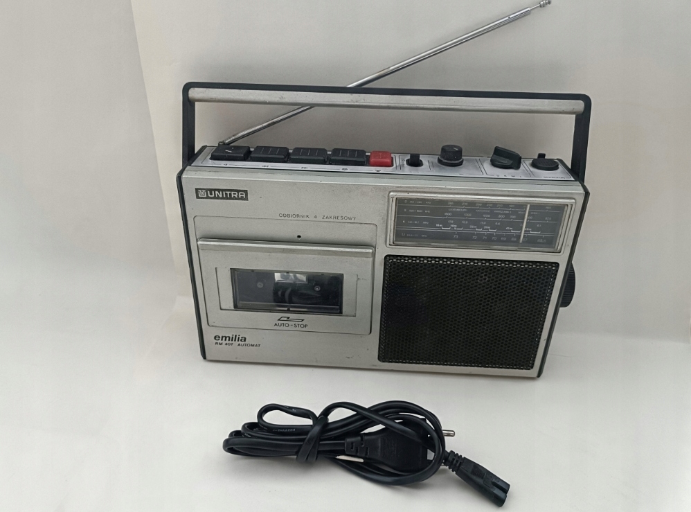 Radiomagne Recorder of Unitra Emilia RM 407 Automat, поврежденный магнитофон поворачивается в обоих направлениях, радио не заливает сигналы. Я приглашаю вас включить свои объявления