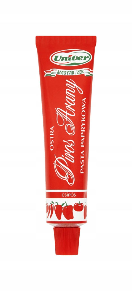 "Пирос Арани" означает "красное золото". Это классическая, ярко-красная, нежная венгерская паста, приготовленная из высококачественного перца. Содержит уникальную композицию овощей, трав и специй. Все ингредиенты поставляются от местных венгерских поставщиков.