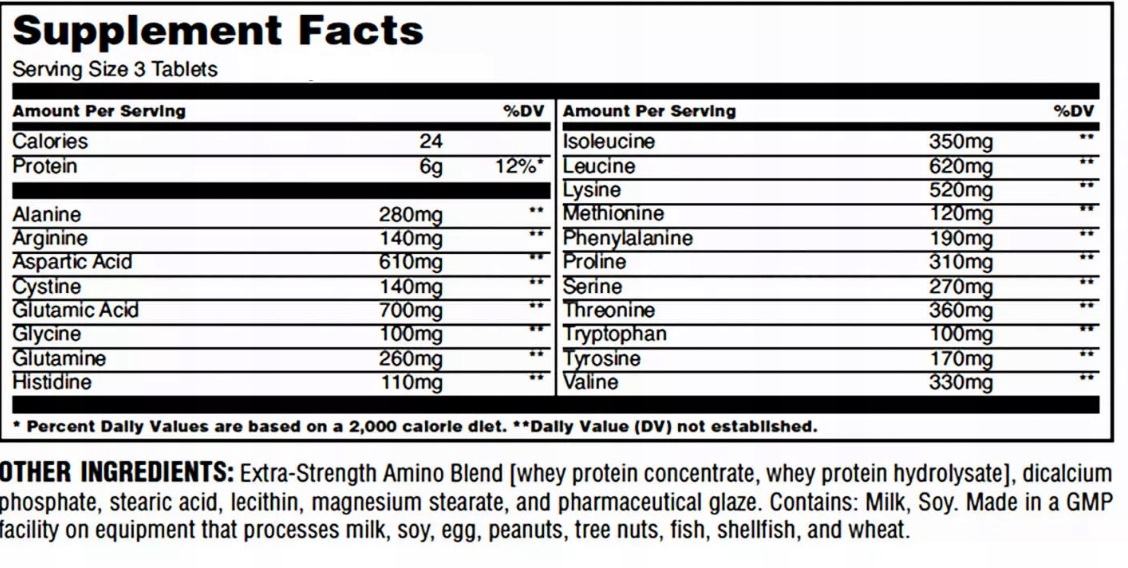 В каждой порции (3 таблетки) Amino 2700 целых 6 граммов аминокислот.