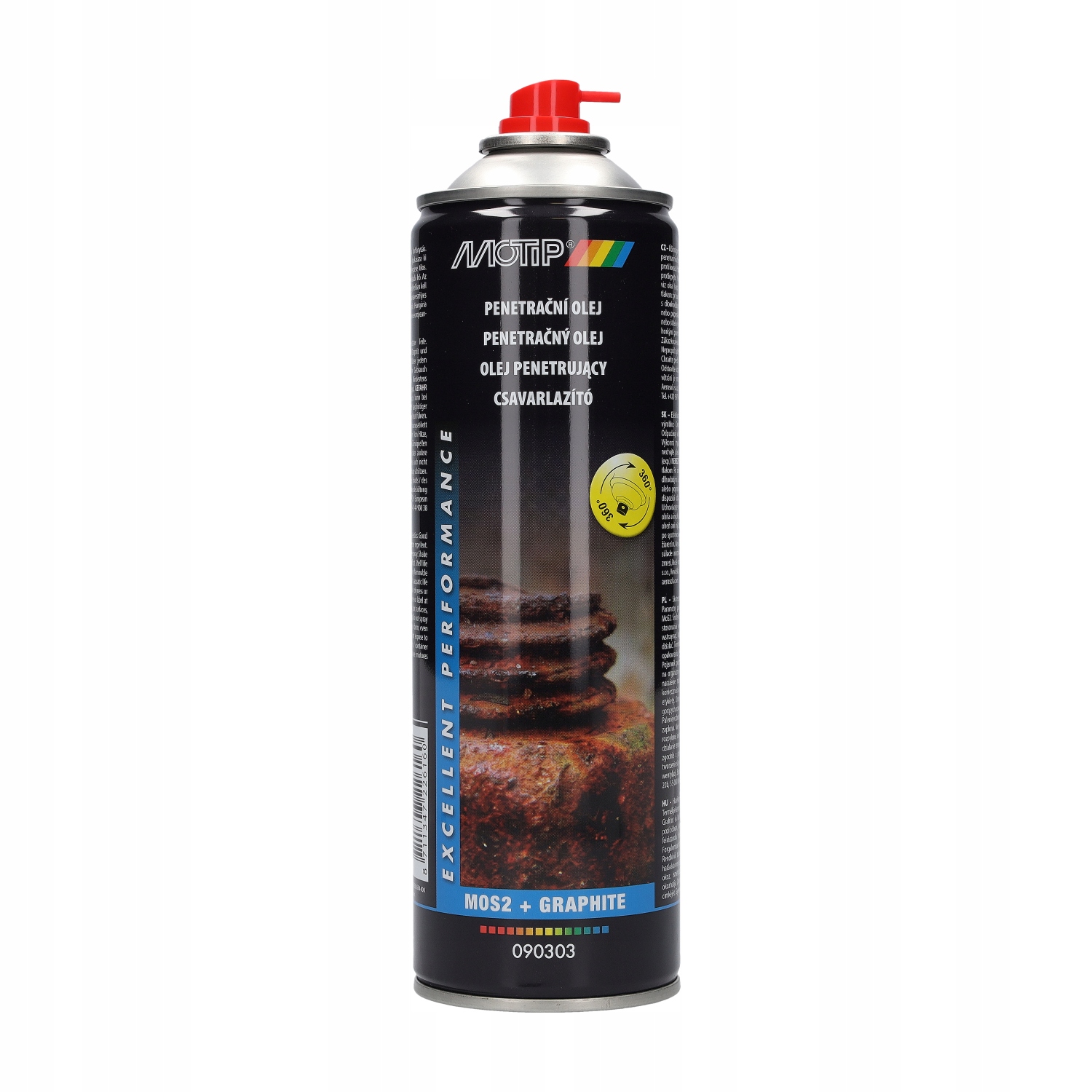 Motip 090303 - это усовершенствованное смазочное масло и проникновение, созданный для эффективного удаления ржавчины и ослабления корродированных соединений в различных транспортных средствах и машинах и является незаменимым, когда необходимо ослабить ржавые металлические детали. содержит молекулы Diper Molebdenum (MOS2) и графит, которые обеспечивают превосходное проникновение и высвобождение даже самых корродированных и запеченных винтов и гаек и длительного смазки, уменьшая трение и продление срока службы деталей.