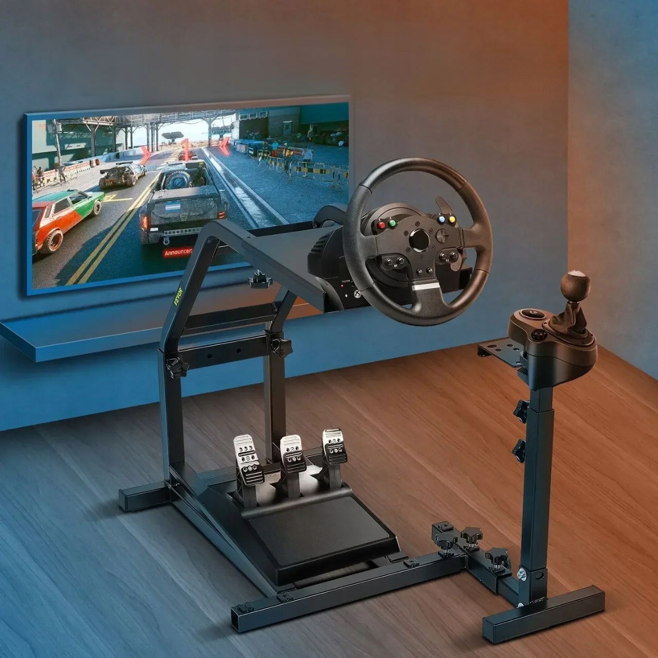 Универсальный игровой рулевой подставка была изготовлена из прочной стали, которая обеспечивает долговечность и стабильность даже во время интенсивного использования. Конструкция обеспечивает полную регулировку - высота, угол наклона и положение педали. Совместимость с популярными моделями, такими как Logitech G29 G27 G25 GT или Thrustmaster , делает его универсальным выбором для каждого игрока. Форма складывания обеспечивает простое хранение.