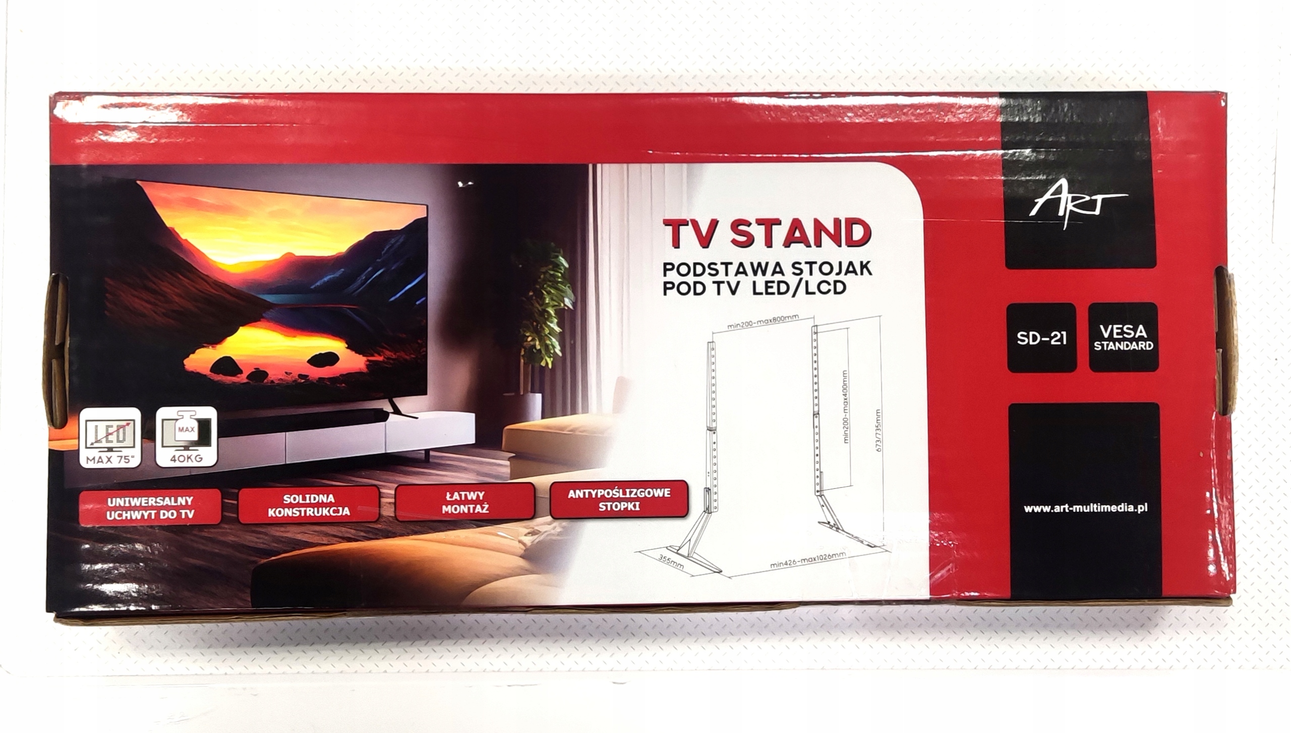 Оплачивая «Universal Stand Art SD-21 ноги для телевидения 23 "-75" До 40 кг VESA MAX 800X400», вы можете быть уверены, что данный товар из каталога «Ручки» будет доставлен из Польши и проверен на целостность. В цене товара, указанной на сайте, учтена доставка из Польши. Внимание!!! Товары для Евросоюза, согласно законодательству стран Евросоюза, могут отличаться упаковкой или наполнением.