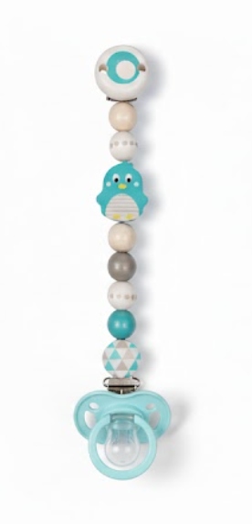 Соска-пустышка УНИВЕРСАЛЬНАЯ ДЕРЕВЯННАЯ КУЛОН С ПИНГВИНОМ 17,5 СМ