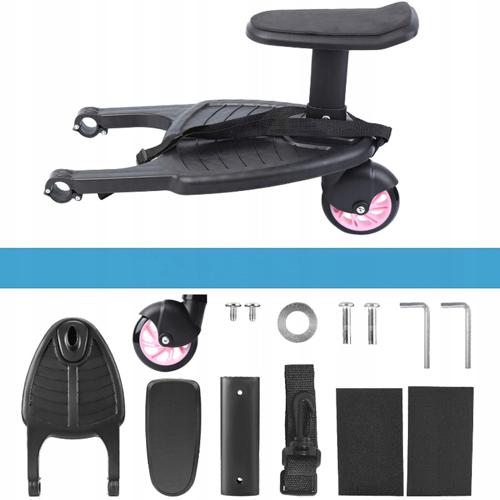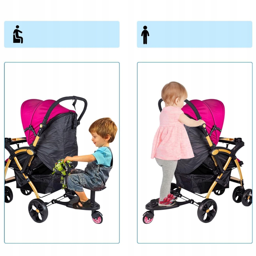 Благодаря 2 блокам, он может быть прочно прикреплен к тележке, чтобы предотвратить ослабление. Для семей с двумя детьми, один из которых спит в инвалидной коляске, а другой стоит на педали или сидит на сиденье.