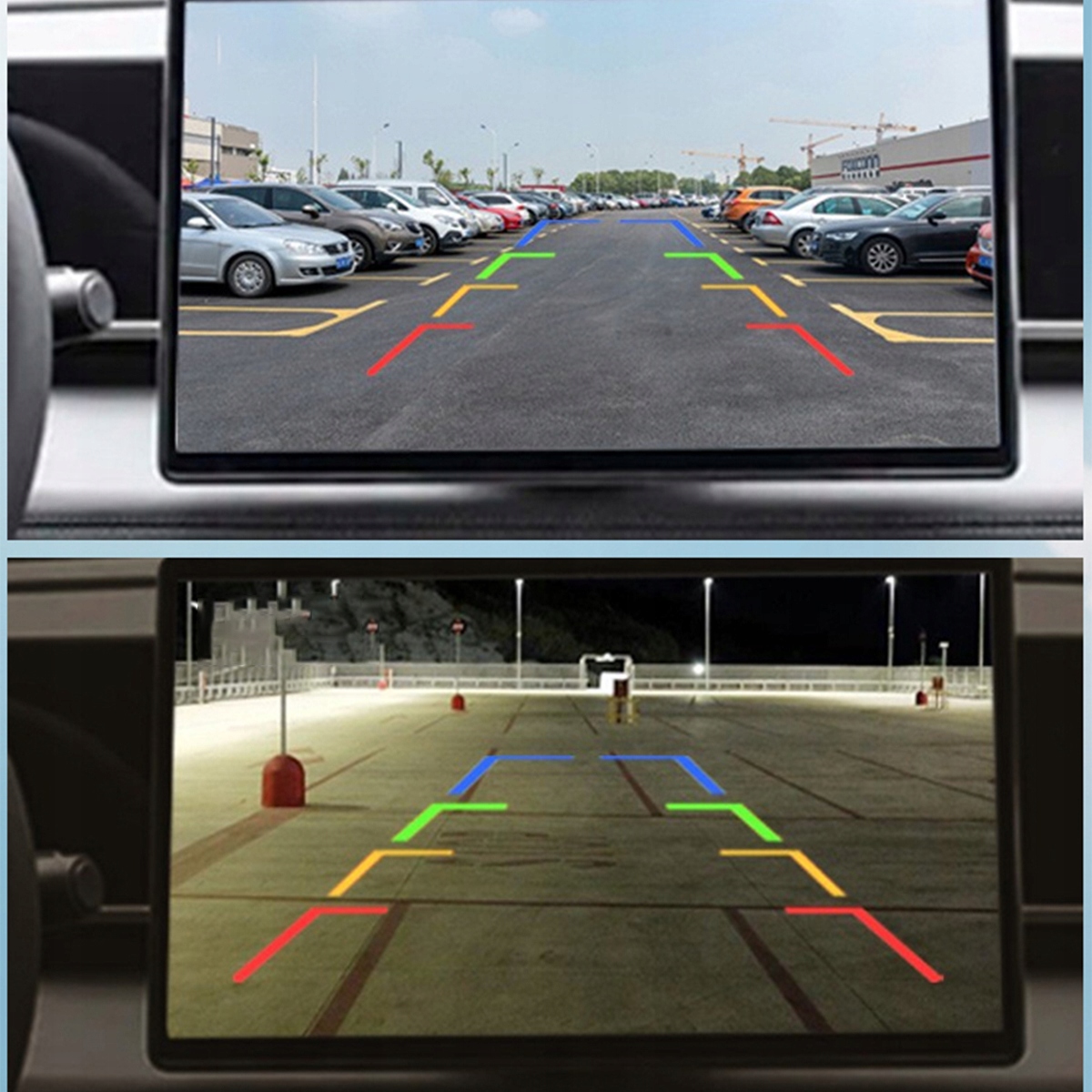 ✅【Универсальные функции】Легко переключаться между изображениями HD 1080P и CVBS. По умолчанию отображается изображение HD без направляющих линий. Режимы можно переключать согласно руководству пользователя. При разрезании белого провода отображаются направляющие линии, при разрезании зеленого провода отображается вид спереди. Повторное подключение перерезанного провода восстанавливает исходный режим отображения.