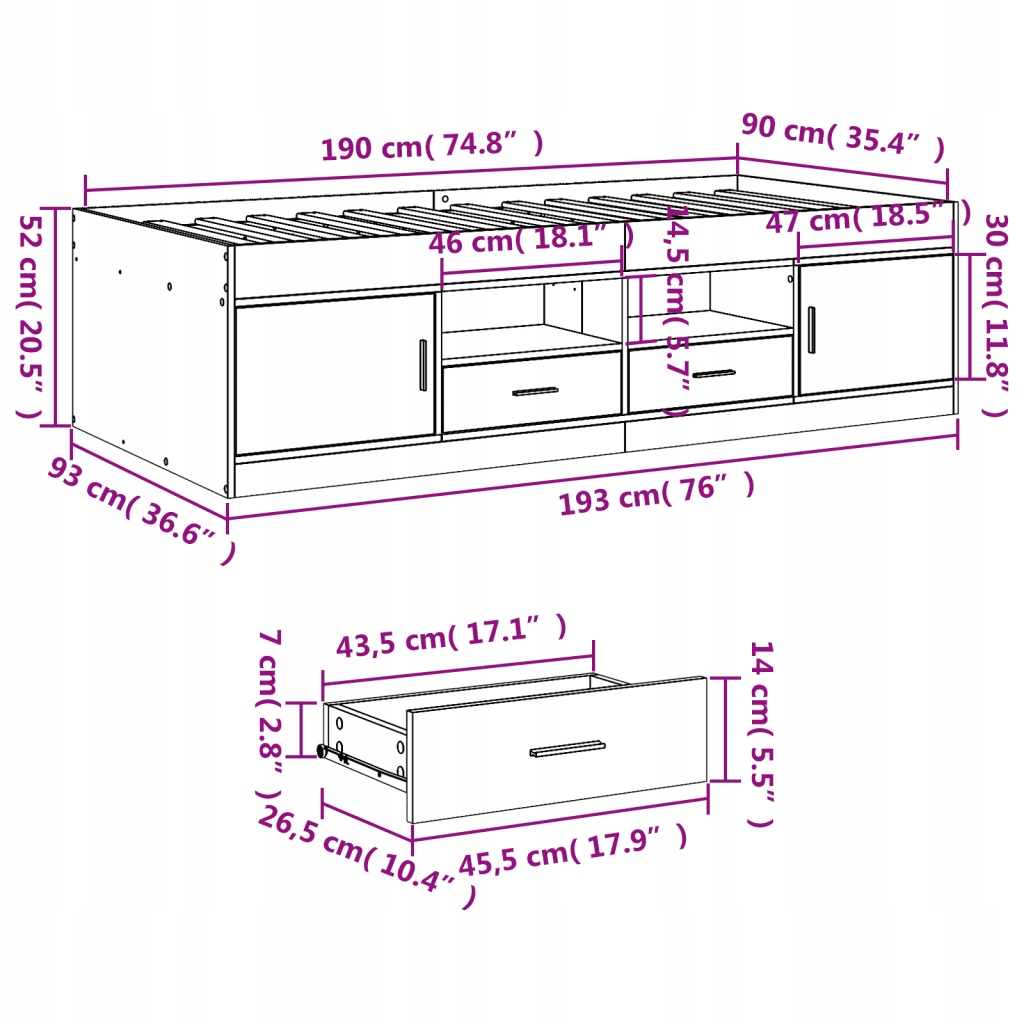 - Функция хранения: Два просторных выдвижных ящика, расположенные под кроватью, обеспечивают достаточно места для хранения вещей, помогая сохранить вашу комнату. аккуратно.