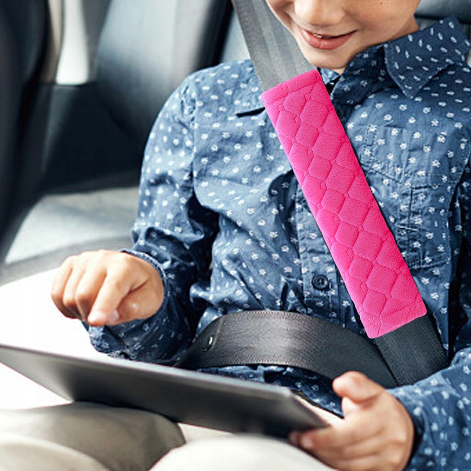 Універсальна м'яка плюшева накладка для автомобільного ременя безпеки рожевого кольору
