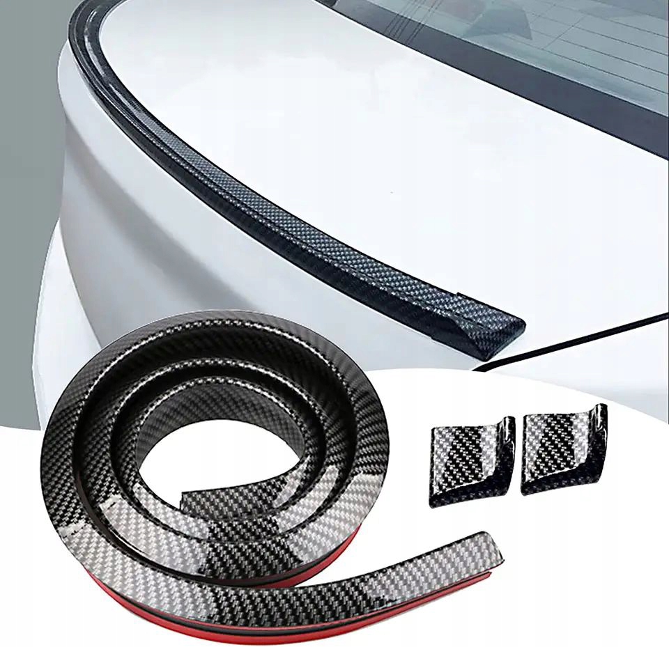 Гибкая резиновая полоса для крепления на крышке багажника, специально для автомобилей седан. Придает автомобилю спортивный вид. Изготовлен из высококачественной резины с карбоновым рисунком.