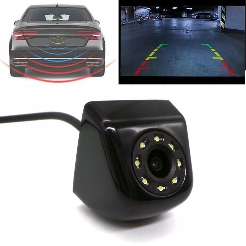 Устройство подключается к любому монитору с видео входом. Камера включается автоматически при загрузке назад. Изображение камеры отображается в цвете. Он генерирует вспомогательные парковочные линии на экране. Камера для установки как спереди, так и сзади автомобиля. Возможность отключить вспомогательные линии. 8 светодиодов - отличная видимость ночью