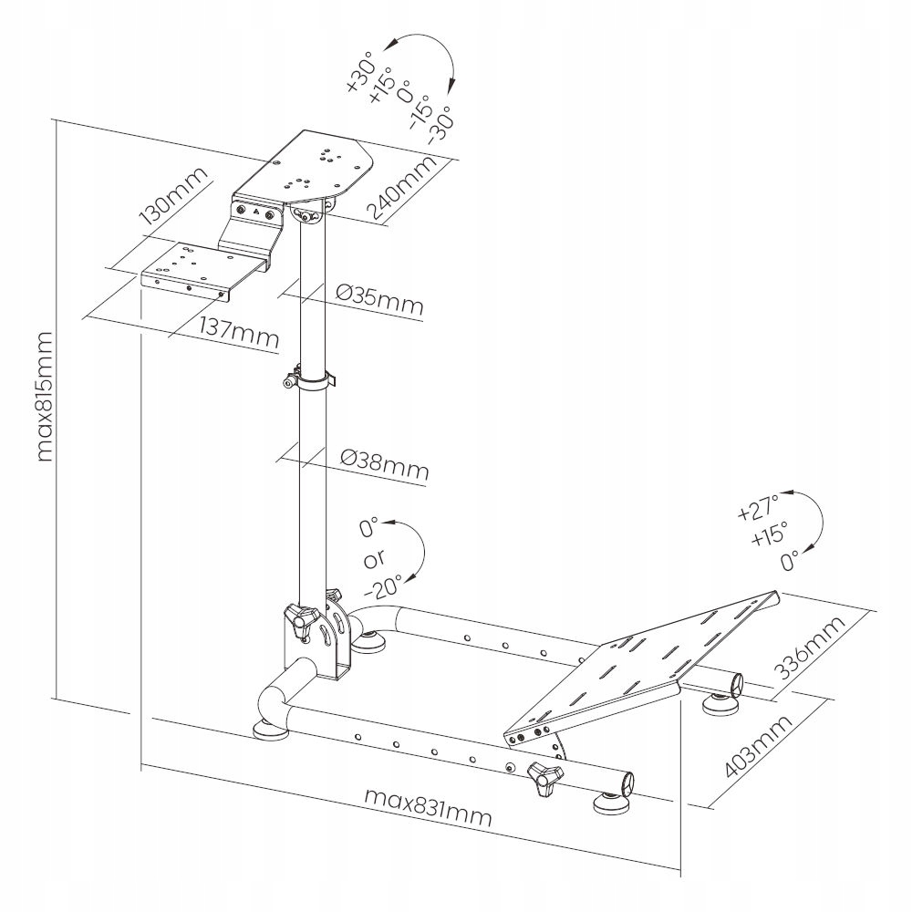- Диапазон наклона панели педалей: 0°/15°/27°.