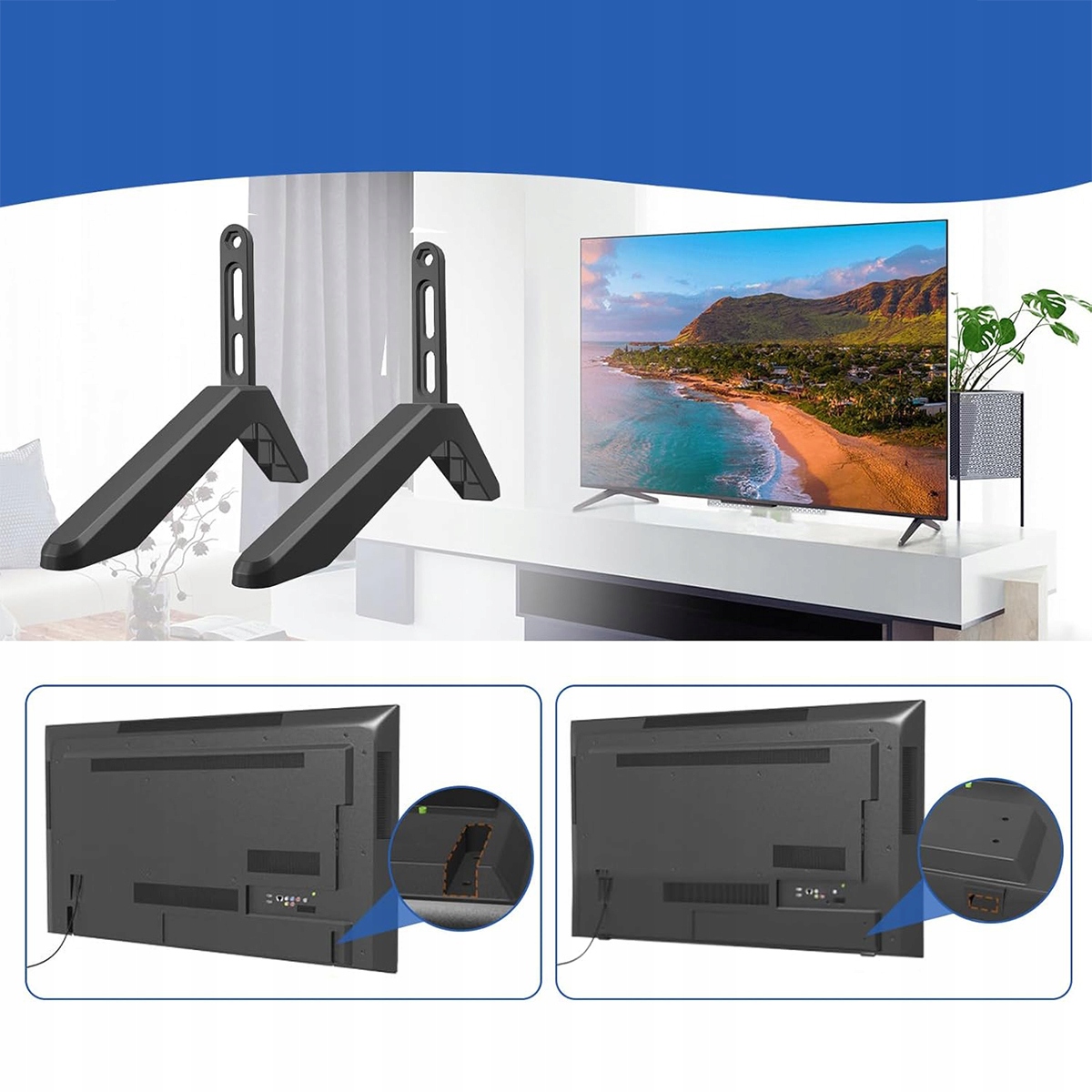 ✅ШИРОКАЯ СОВМЕСТИМОСТЬ: Эта универсальная подставка для телевизора совместима с телевизорами Samsung, LG, Sony, TCL, Philips, Vizio, Toshiba, Sharp и Haier.