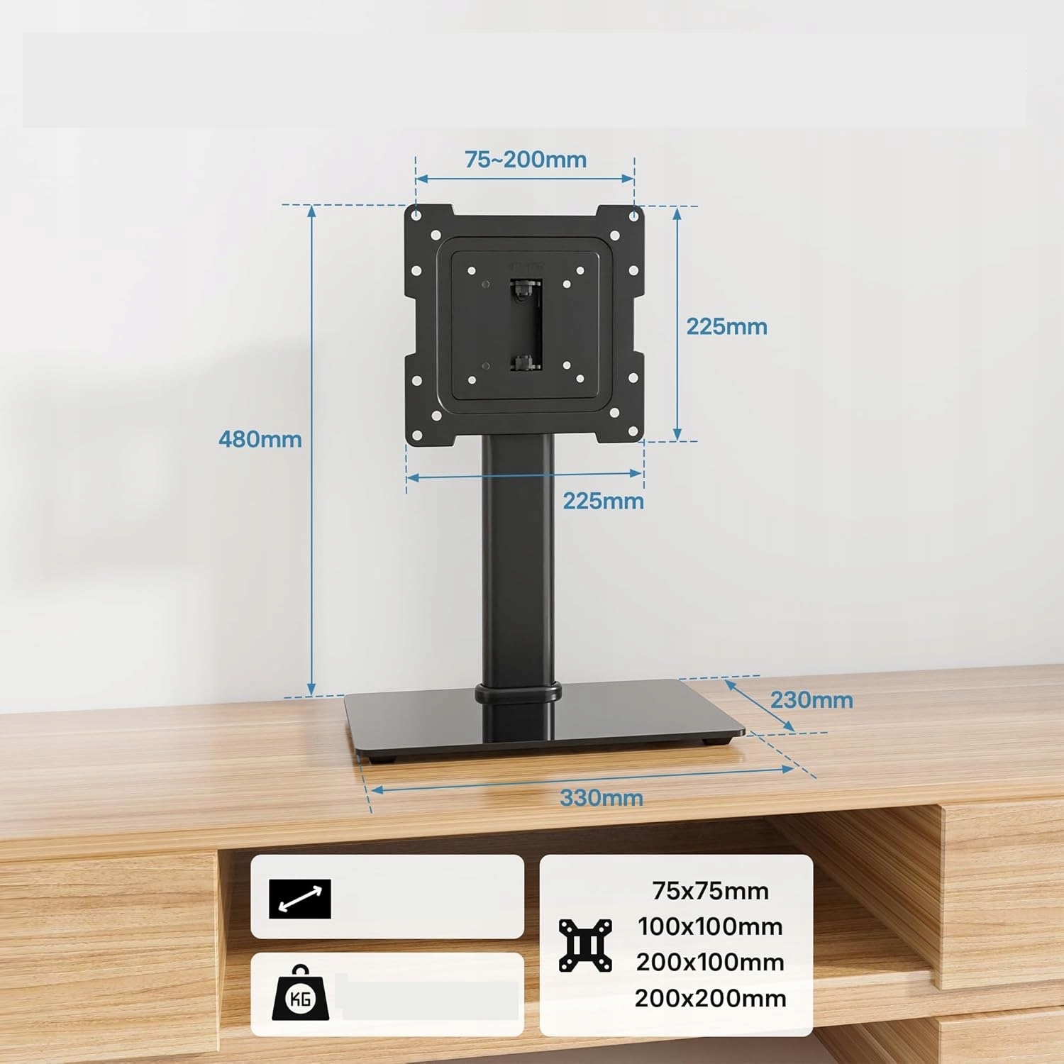 - Совместимость: наша стойка для телевизоров подходит для большинства плоских и изогнутых экранов LCD / LED / OLED с VESA 75 x 75 /100 x 100 /200 x 100 /200 x 200 мм (убедитесь, что кабельный сокет не будет покрыт) и совместима со всем Sony, Vizio, Sharp, TCC. L, Hisense и не только в спальню, школы и офисы. Перед покупкой проверьте размер, Веса и счет телевизора