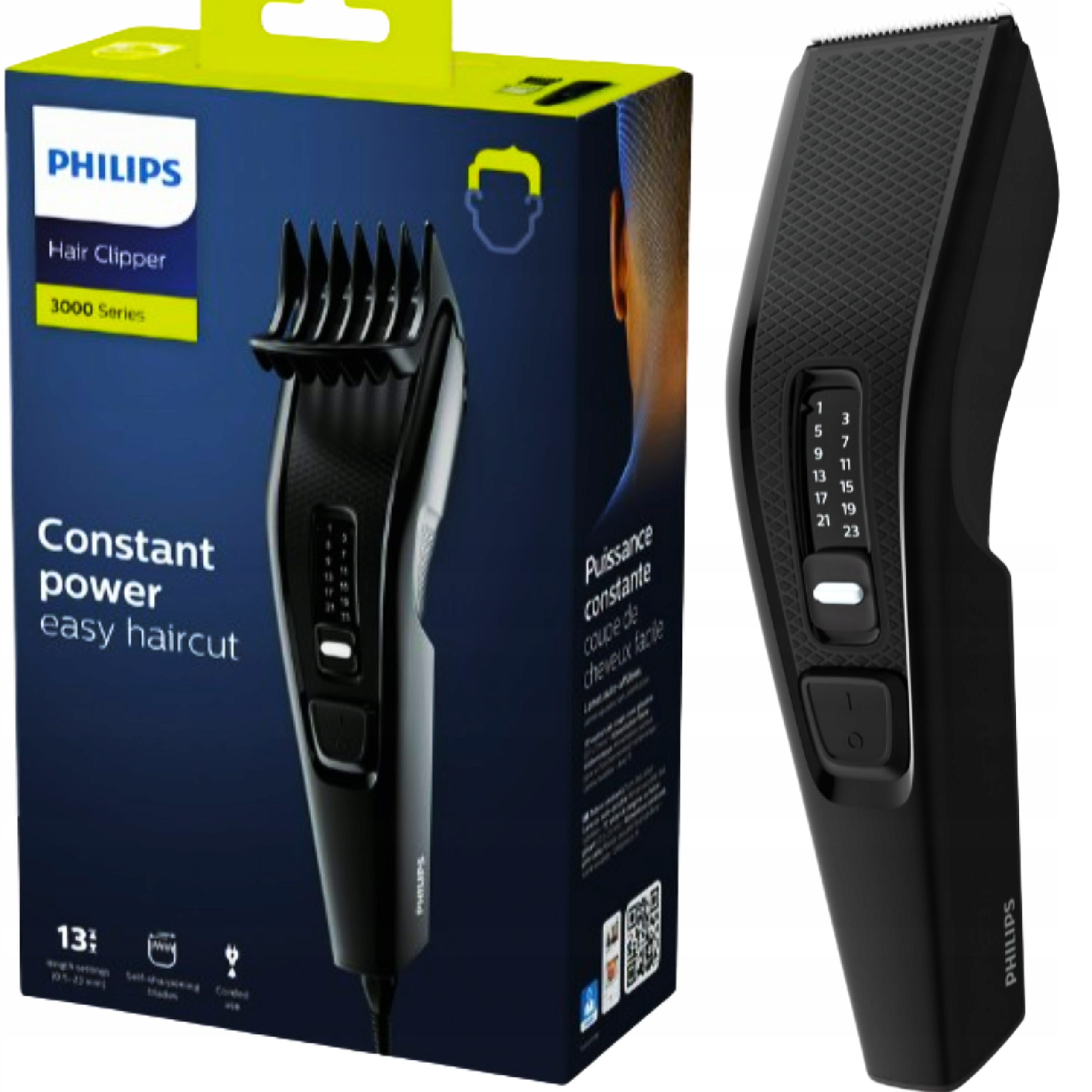 Просто выберите и зафиксируйте желаемую настройку длины. Регулируемый колпачок позволяет регулировать длину от 0,5 до 23 мм. Расстояние между последующими настройками ровно 2 мм. Вы также можете снять расческу и коротко подстричь волосы до длины 0,5 мм.