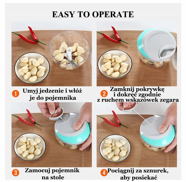 Он оснащен простым и удобным струнным механизмом, который позволяет очень быстро и качественно измельчить любые фрукты. эффективно или овощной. Наш куттер также пригодится в приготовлении соусов или подливок. Благодаря ему вы сможете быстро приготовить вкусные блюда, которые будут красиво смотреться на столе во время вашего праздника, будь то в канун Нового года или семейные посиделки во время праздников, дней рождения или других торжественных мероприятий.