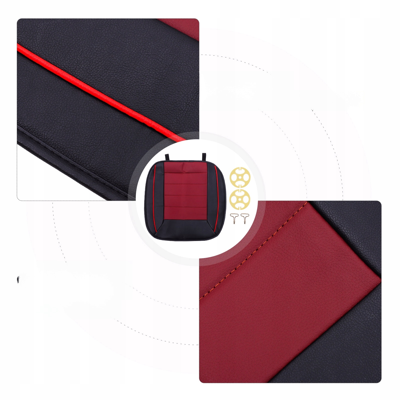 ✅1 х универсальная кожаная подушка для автомобильного сиденья, полный передний чехол для защиты автомобильного сиденья (черный + красный)
