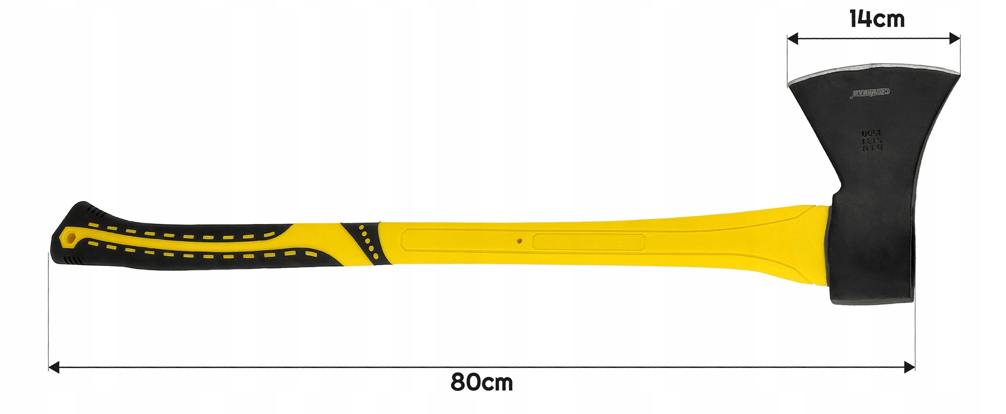 ✔ оптимальные размеры и прочная конструкция - общая длина топора 80 см, ширина головки 14 см, вес 1500 г. Это обеспечивает идеальный баланс между комфортом использования и эффективностью работы.