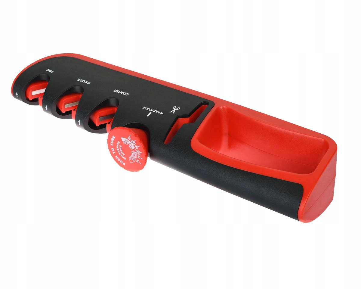 <ул>Инструмент для быстрого восстановления должной функциональности ножей и ножниц на кухне, в мастерских и на рабочих местах. Он регулируется для выбора оптимального угла заточки. Благодаря этой функции коррекции мы можем затачивать многие виды бытовых ножей, мастерских, охотничьих ножей, тактических ножей и т. д. Помимо рукоятки точилка имеет функцию заточки ножниц.