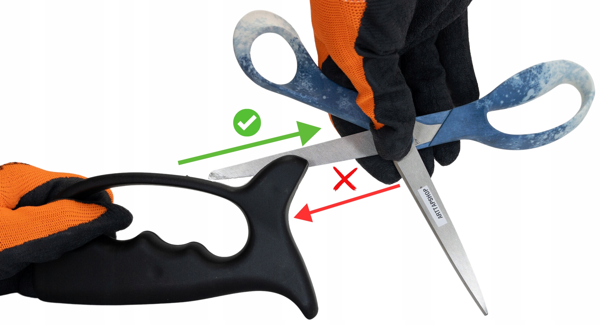 ⚠️ На фото зеленая стрелка указывает правильное направление заточки ножниц, а красная стрелка неправильное ⚠️< /п>