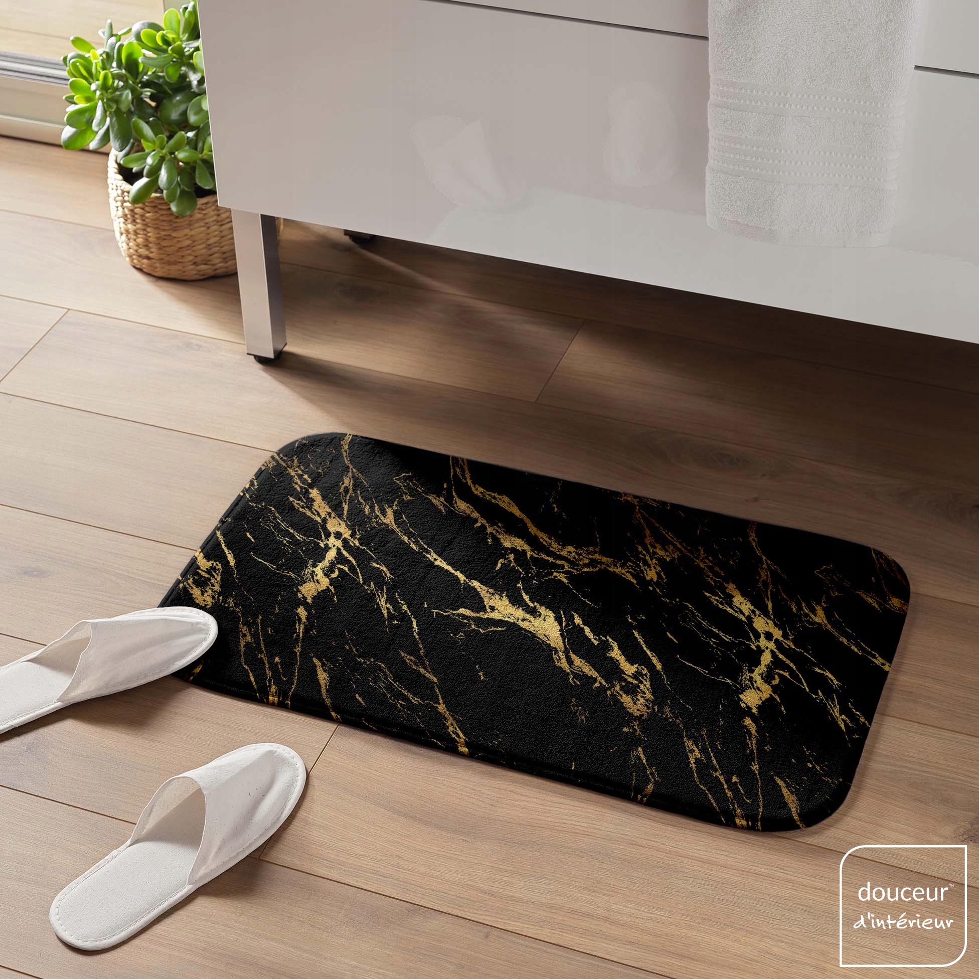 - Элегантный рисунок - Мрамор в оттенках черного и золотого , придает ванной комнате роскошный вид.