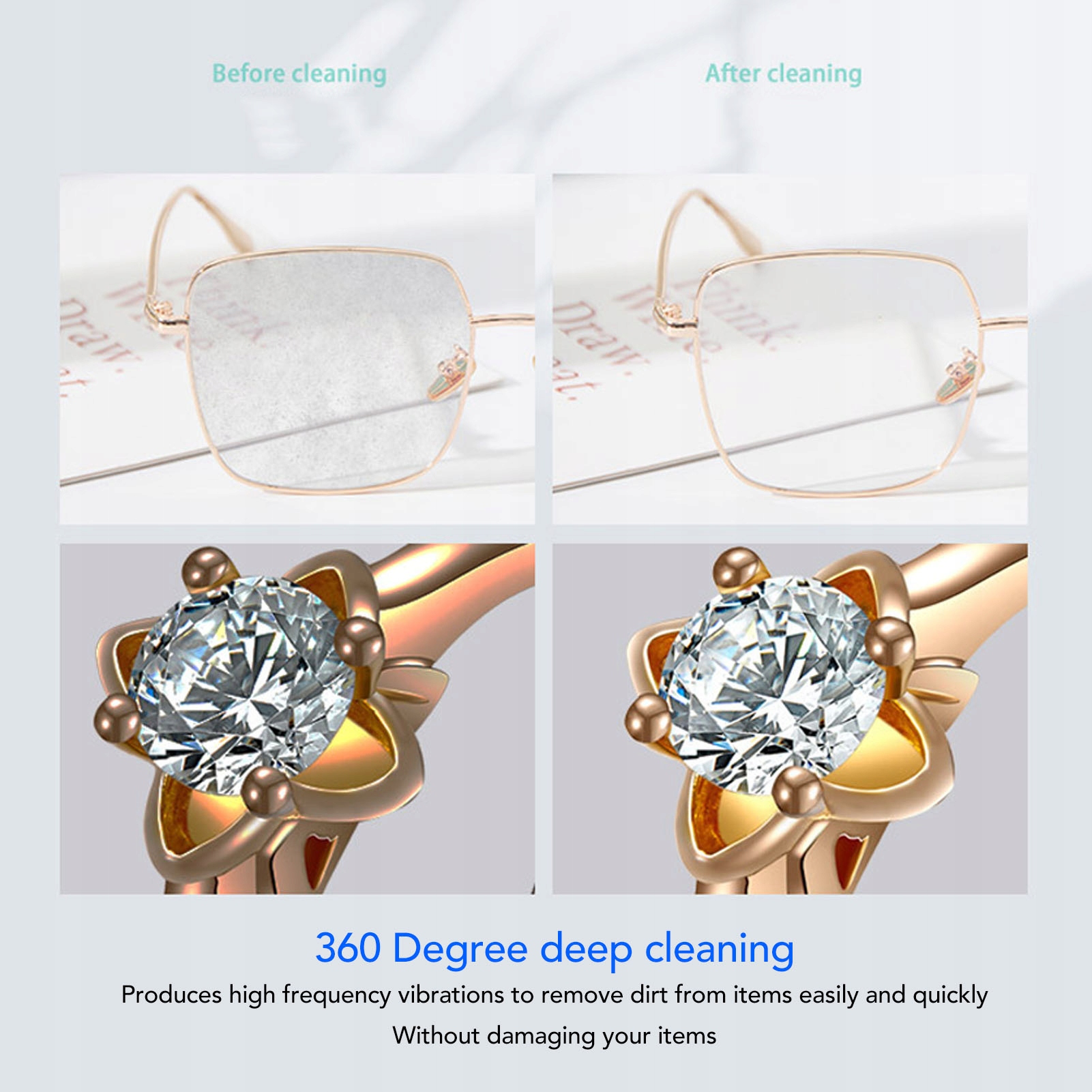 4. Universal: Чистящий агент может чистить различные предметы, такие как очки, украшения, кисти для макияжа, часы, игрушки, посуду, бритву, ручки, зубные щетки, ножницы, расчески и т. Д.