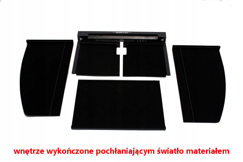 - Изготовлен из прочного АБС-пластика. Внутренняя часть отделана светопоглощающим материалом.