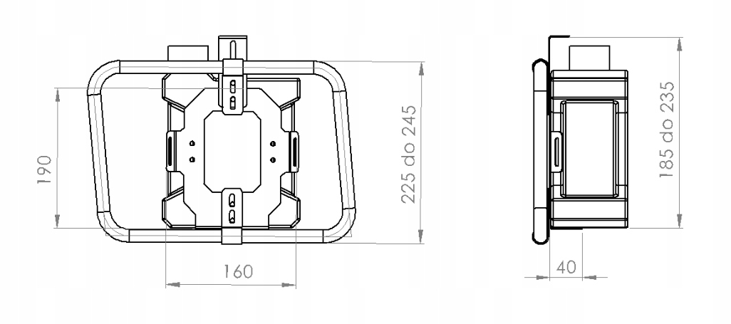 - высота верхнего крюка регулируется в зависимости от высоты канистры мин 185-235макс