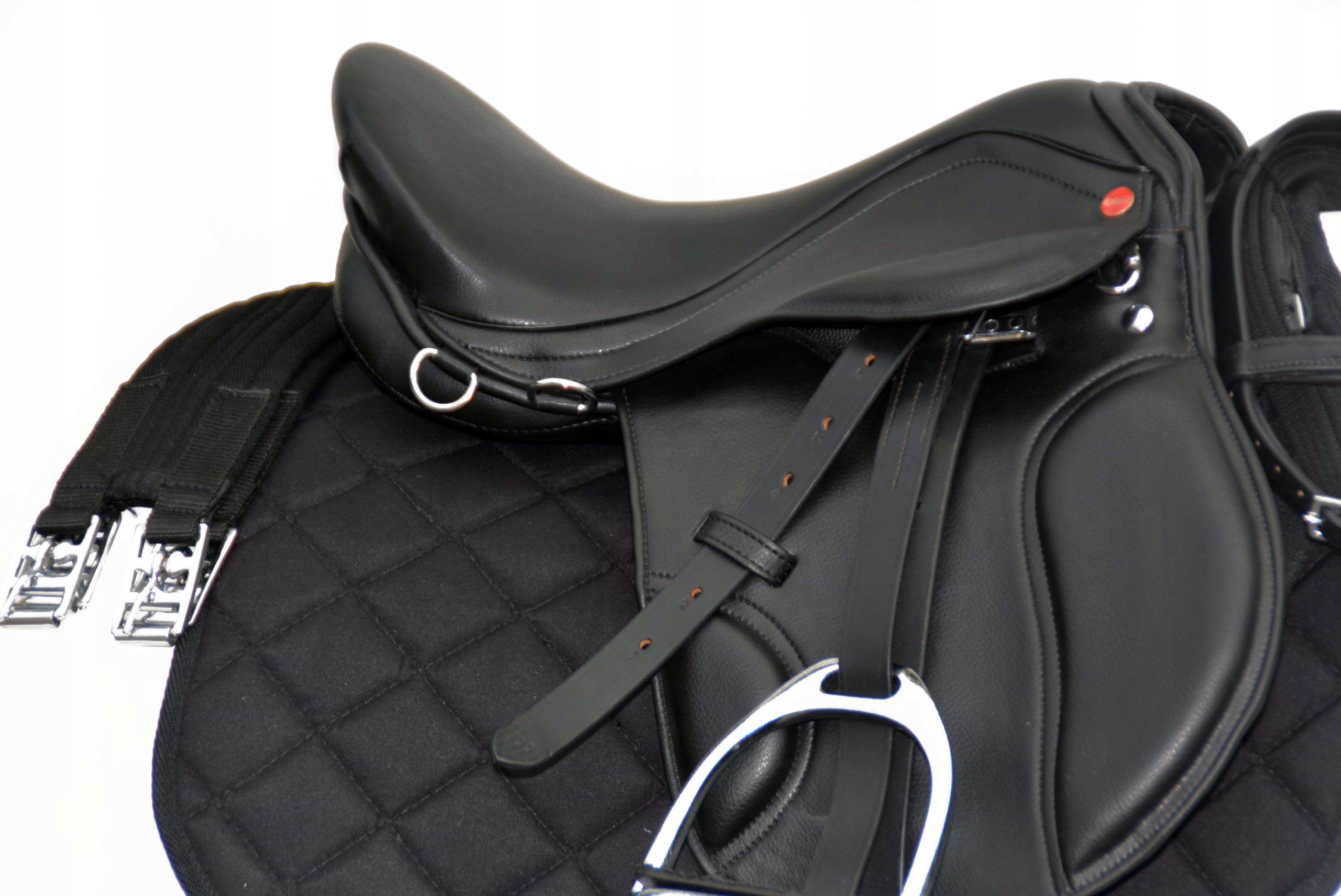 Полное 15-дюймовое универсальное седло для пони, выполненное полностью из материалов очень хорошего качества, седло очень легкое. Сделано на шорной фабрике в Англии. Седло имеет легкую конструкцию, дерево сконструировано таким образом. Благодаря тому, что бедра и особенно тазобедренные суставы не подвергаются ненужным нагрузкам, оптимально расположенный центр позволяет всаднику сидеть правильно. Коленный блок. Единственная модель седла по такой низкой цене. В комплект седла входят стремена, стальные или черные композитные стремена, седельная ткань и подпруга.