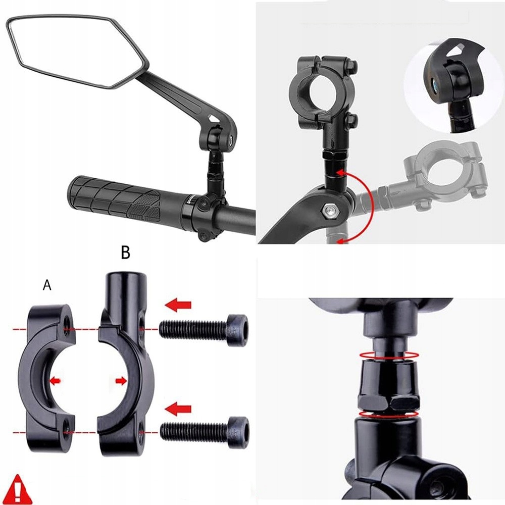 【Вращение на 360 °】 Наши велосипедные зеркала имеют гибкий крепление крепления внизу. Зеркало заднего вида может быть отрегулировано в зависимости от ваших потребностей. Следите за дорогой под выбранным углом, без мертвых точек, более простым и более удобным.