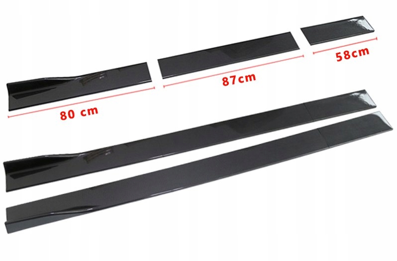 Универсальные добавления порогов «боковых юбков» в черном. Добавление было сделано из высококачественного материала в черном блеске, оно не требует лакировки. Элемент готов к сборке.