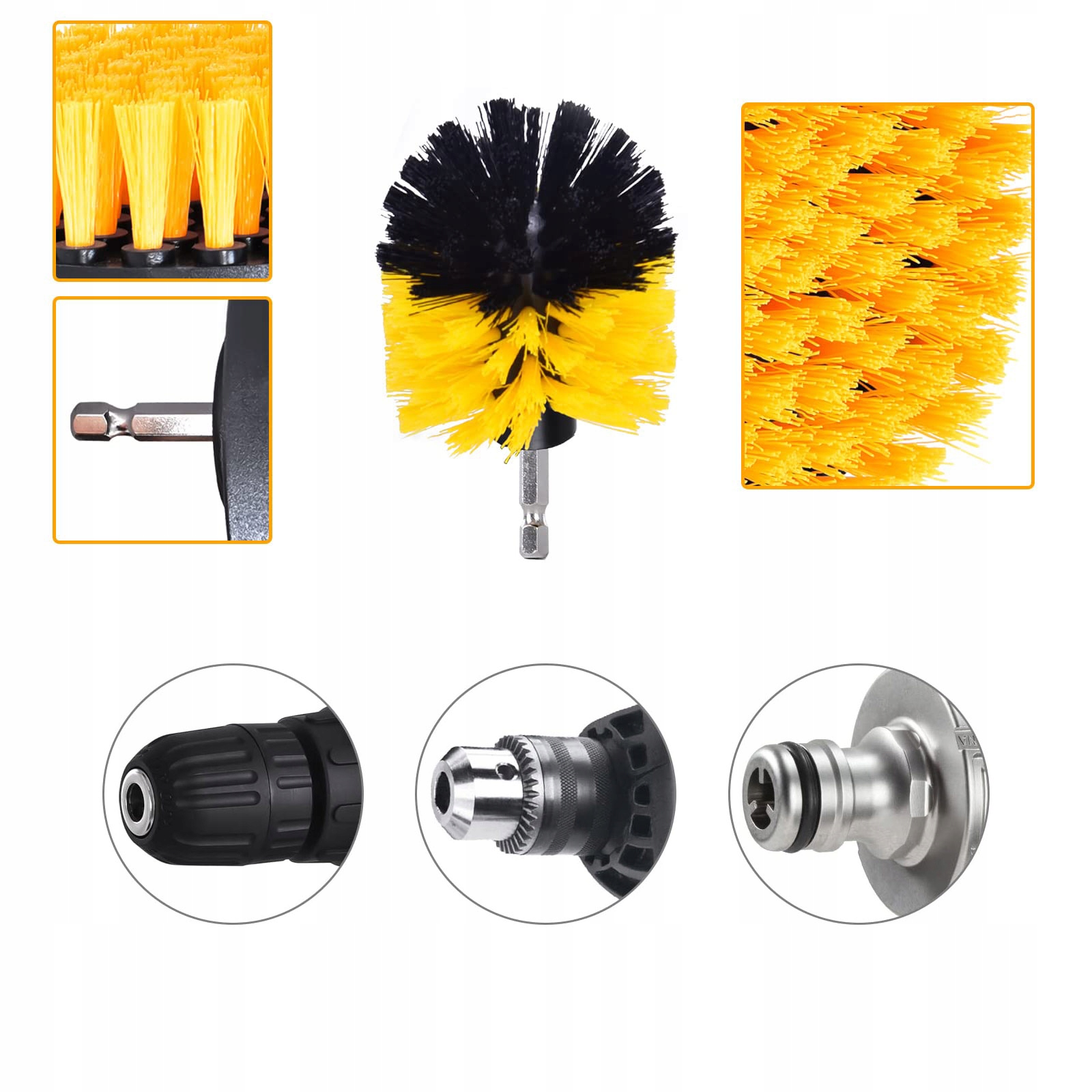 【Универсальная посадка】: набор щеточек для сверла оснащен стандартным стальным быстросъемным валом диаметром 1/4 дюйма, который надежно крепится к сверлу . Эта щетка подходит для большинства дрелей, а прочный стержень достаточно прочен, чтобы выдерживать тяжелую чистку.