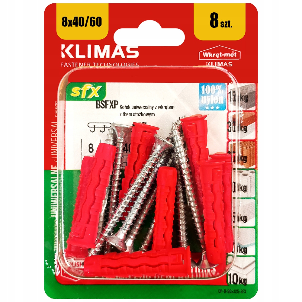 Универсальные колышки 8x60 с конической головкой Pz2 Blister 8pcs Klimas
