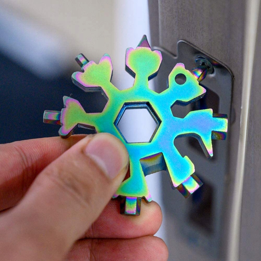 Ключ многофункциональный 18 в 1, форма снежинки. Изготовлен из высококачественной нержавеющей стали, устойчивой к коррозии и повреждениям.