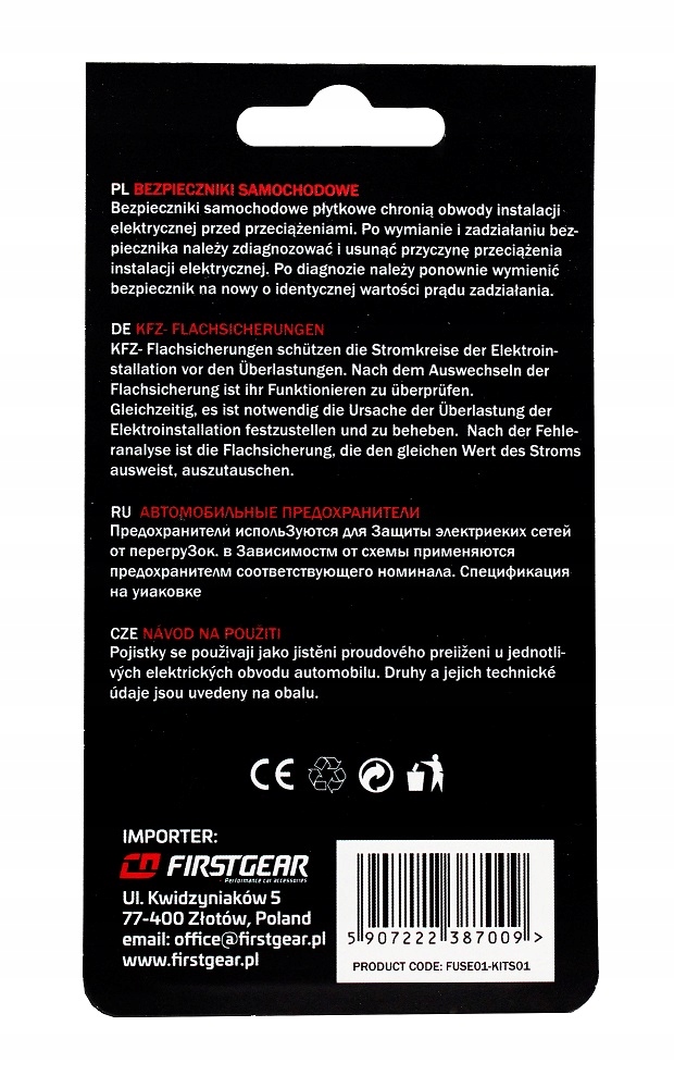 Просматривая «УНІВЕРСАЛЬНІ ПЛАСТИНОВІ ЗАПОБІЖНИКИ 10шт СТАНДАРТ FirstGear ЗАПАС», вы можете быть уверены, что данный товар из каталога «Предохранители» будет доставлен из Польши и проверен на целостность. В цене товара, указанной на сайте, учтена доставка из Польши. Внимание!!! Товары для Евросоюза, согласно законодательству стран Евросоюза, могут отличаться упаковкой или наполнением.