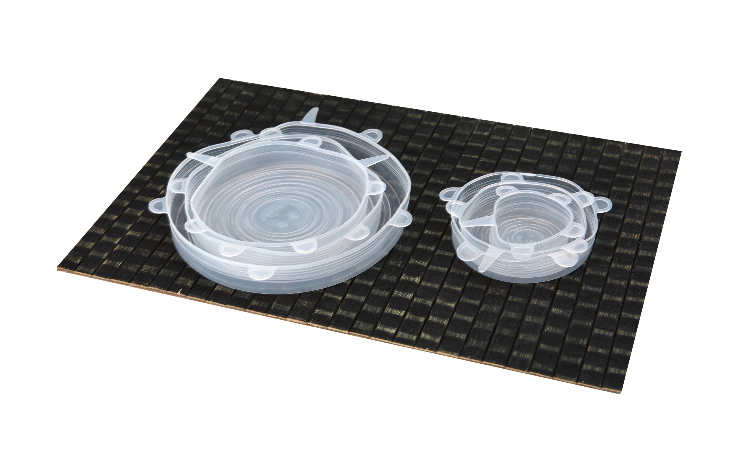 Материал, из которого изготовлены чехлы, — эластичный силикон. Это позволяет натянуть крышку на сосуд немного большего размера. Этому способствуют выступающие выступы, за которые легко ухватиться.