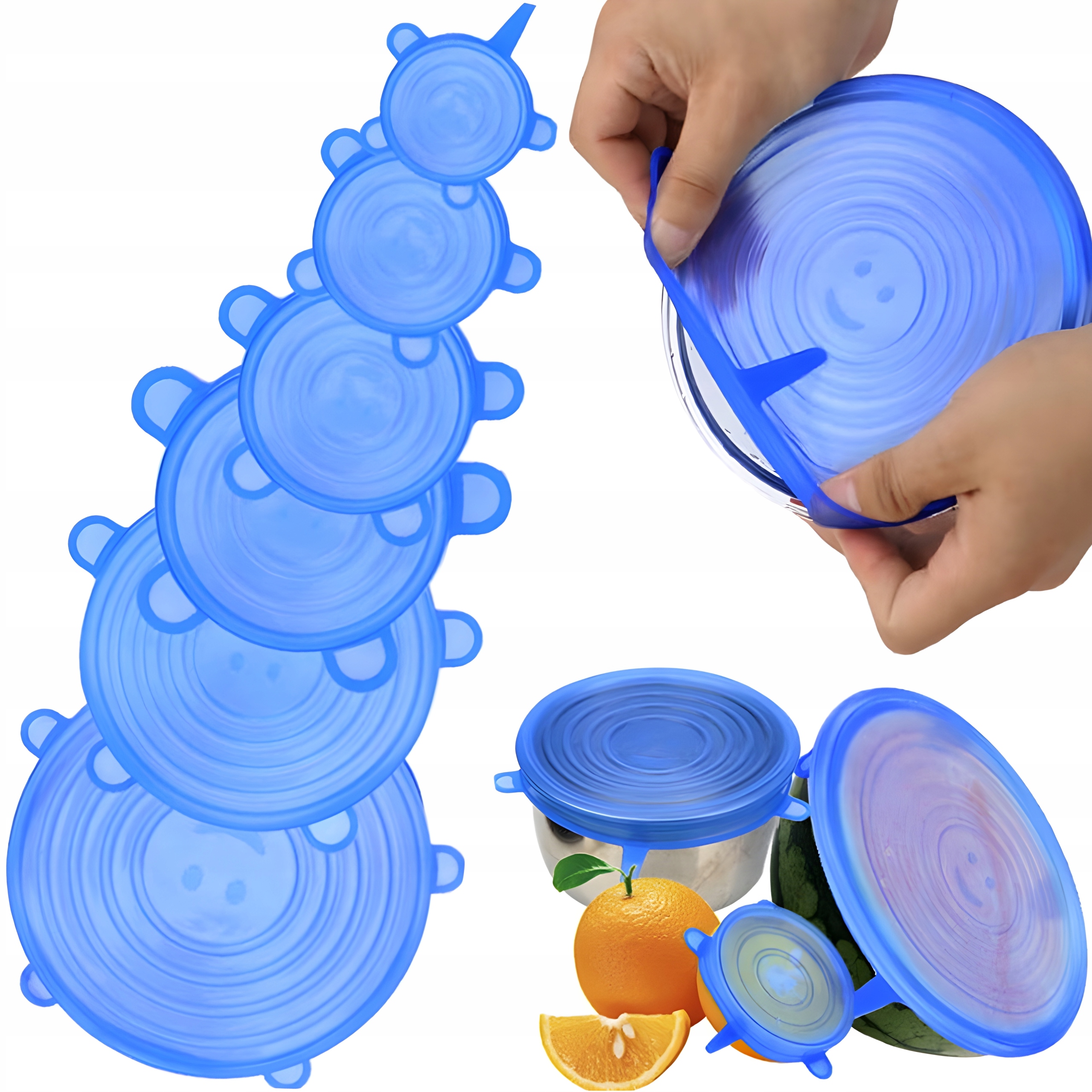 УНИВЕРСАЛЬНЫЕ СИЛИКОНОВЫЕ КРЫШКИ ДЛЯ ПИЩЕВЫХ ПРОДУКТОВ 6 ШТ