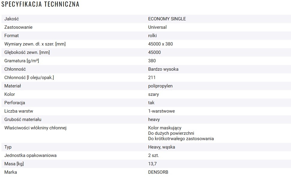 Сорбенты универсальные DENSORB, рулоны впитывающего нетканого полотна Эконом Одиночный, тяжелый, 38 см х 45 м, 2 шт.